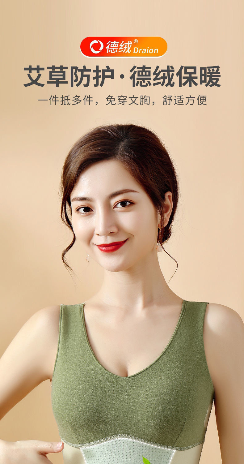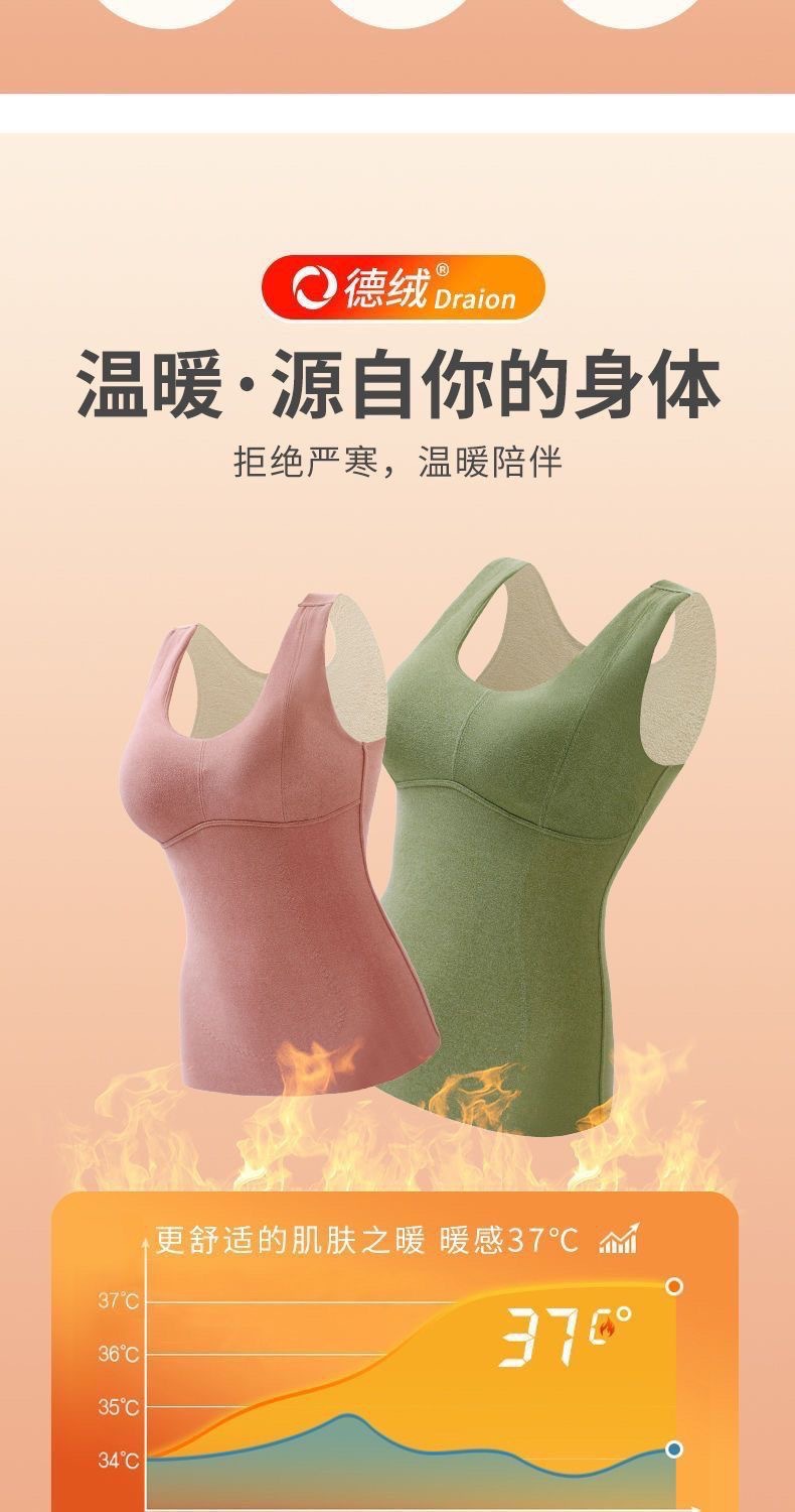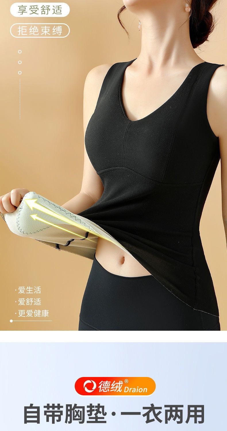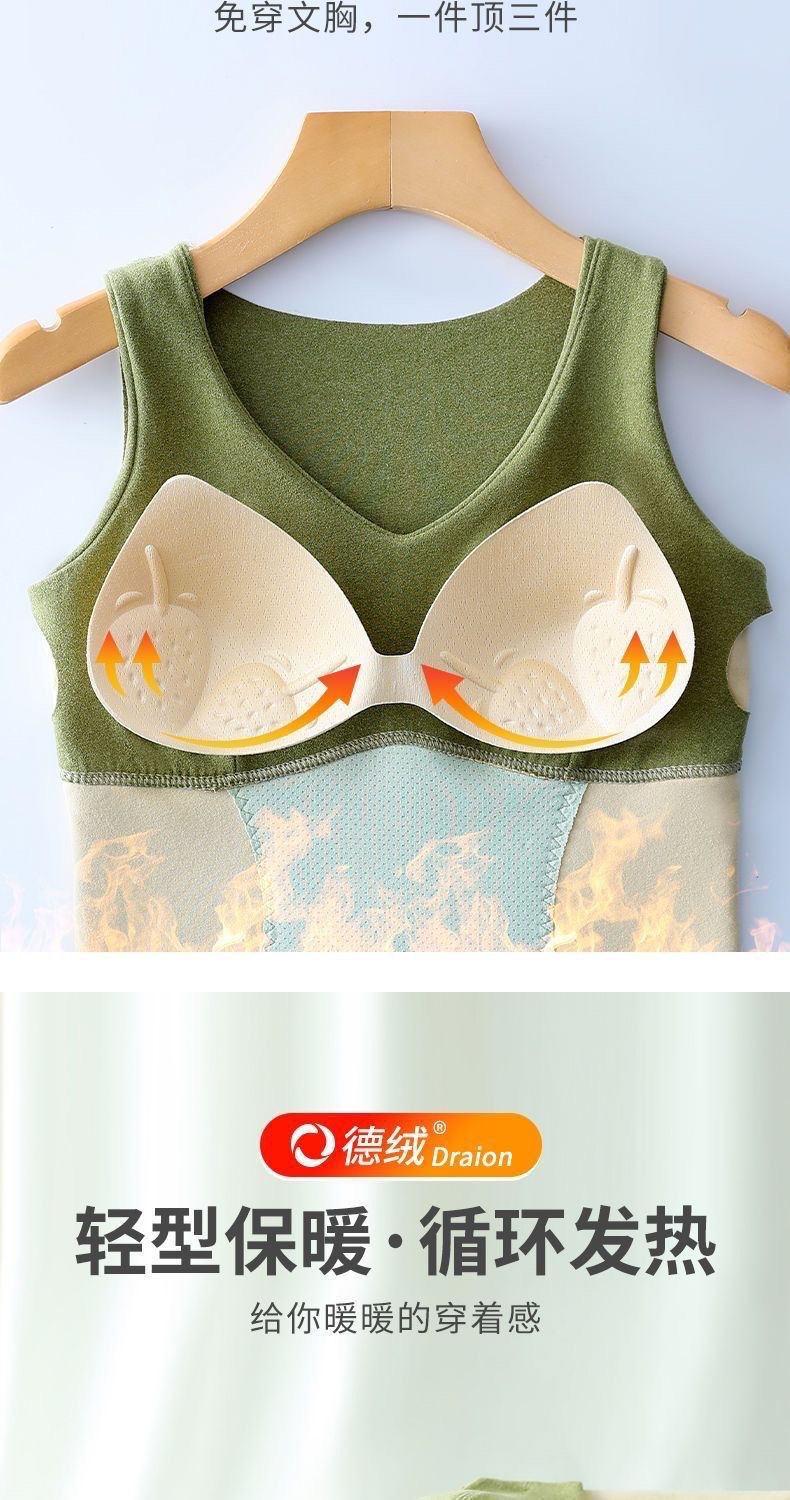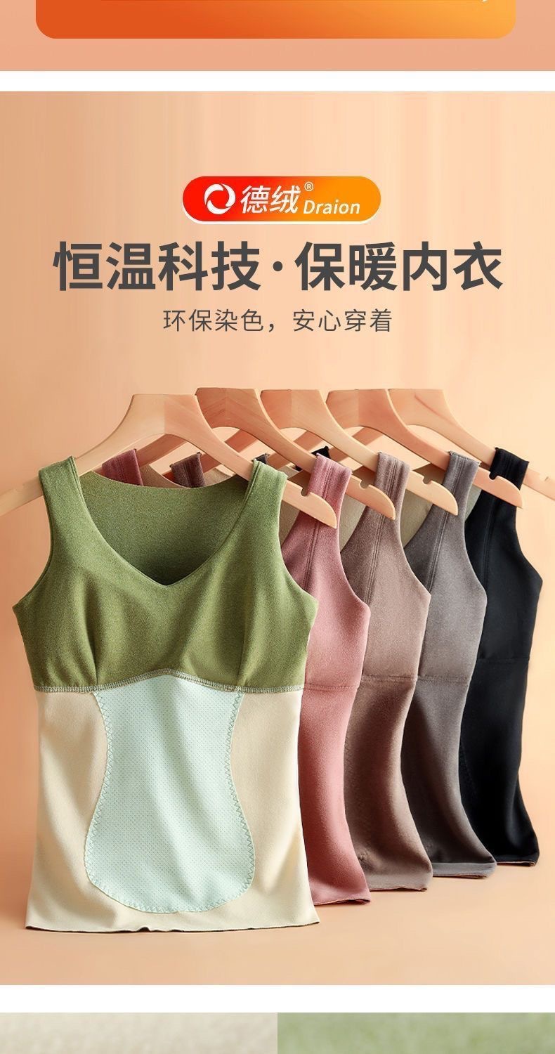 【艾草防护&暖宫神器!抢2件巨划算!】爆款德绒发热保暖背心 女士带胸垫加绒秋冬百搭吊带背心 打底衫内衣
