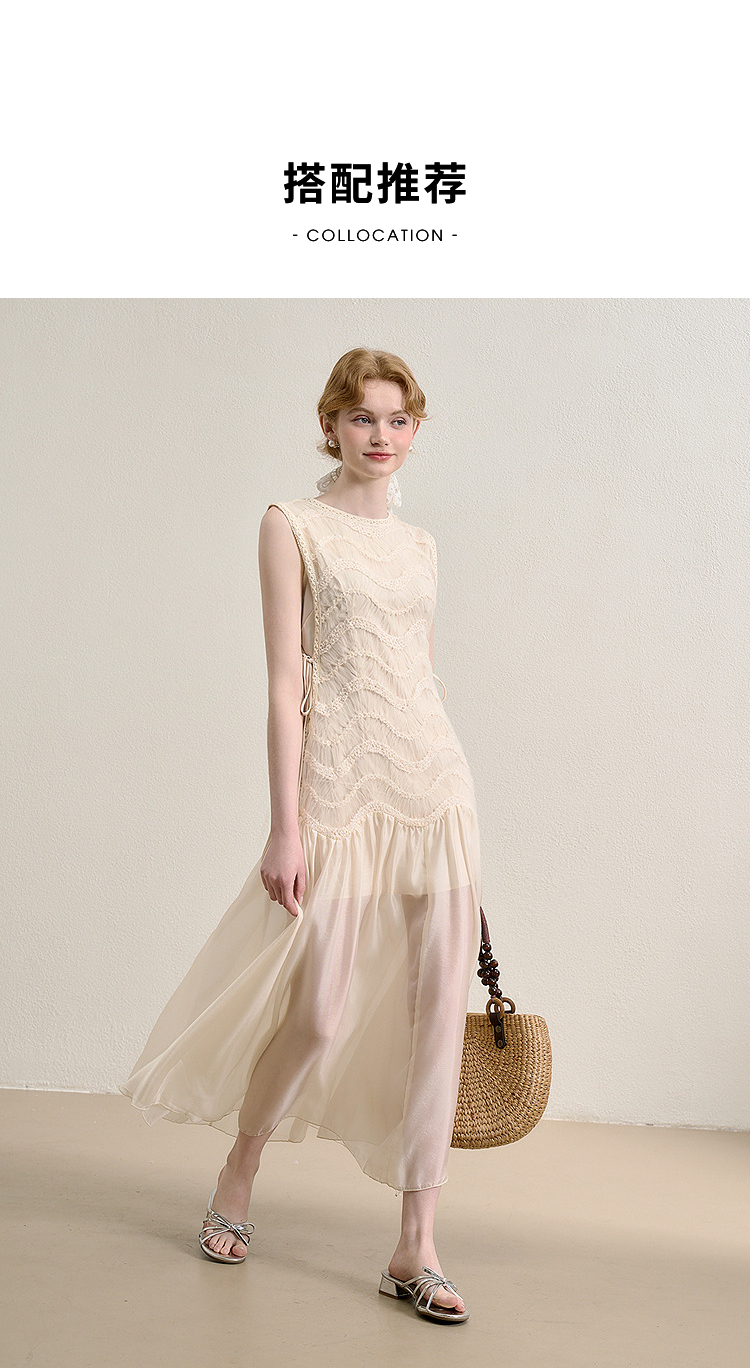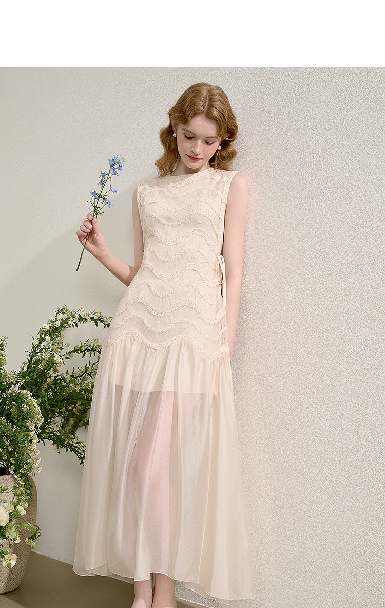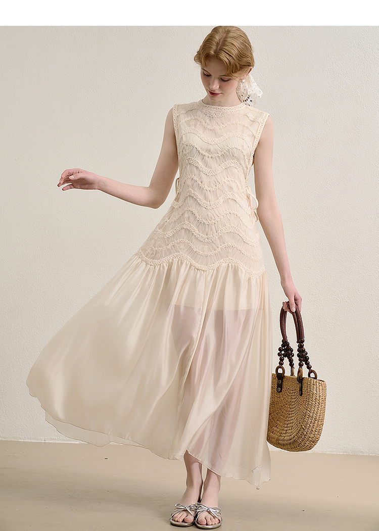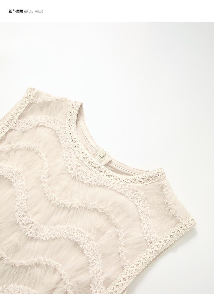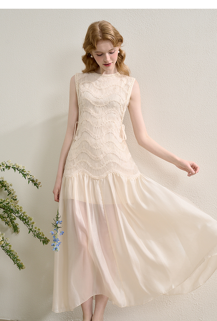 【度假欧若风】法式浪漫拼接蕾丝网纱裙女夏季波纹连衣裙H0050817