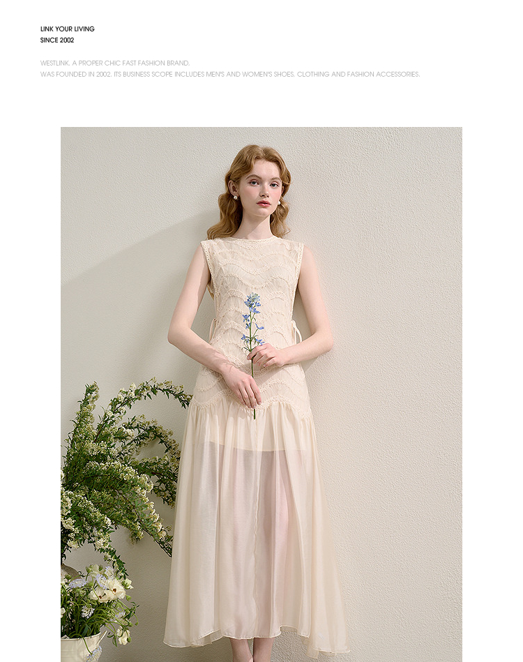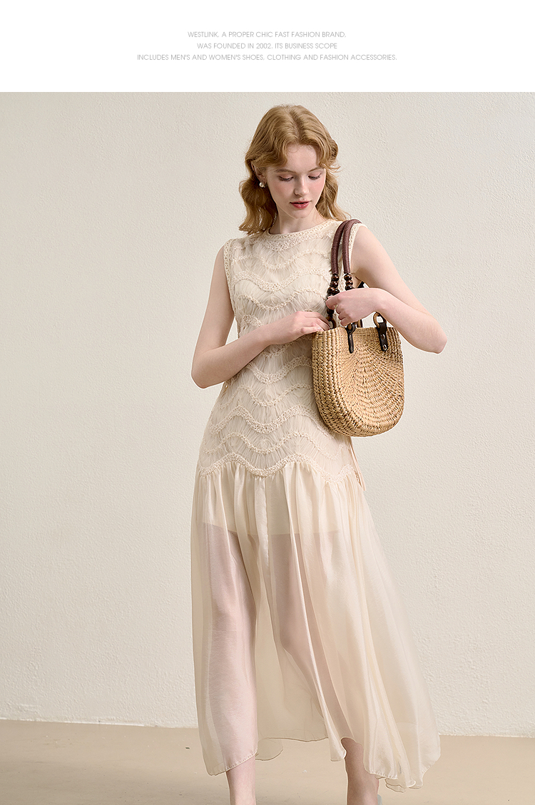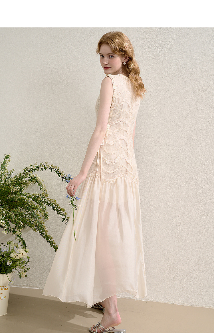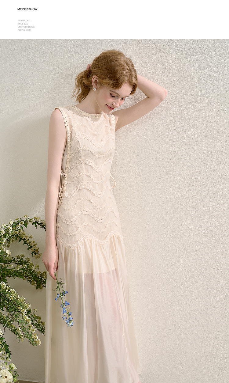 【度假欧若风】法式浪漫拼接蕾丝网纱裙女夏季波纹连衣裙H0050817