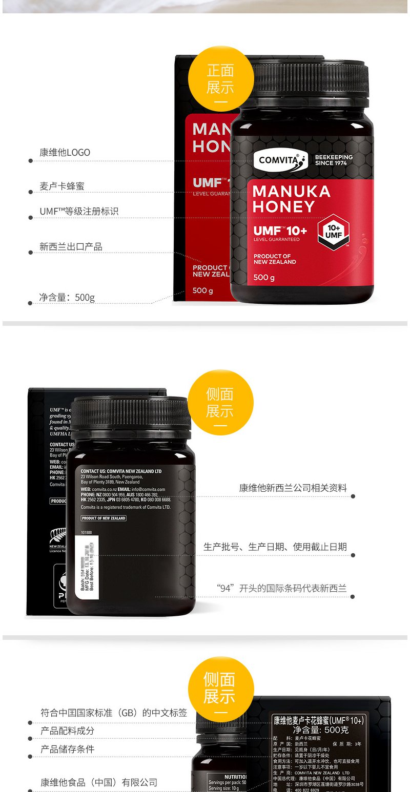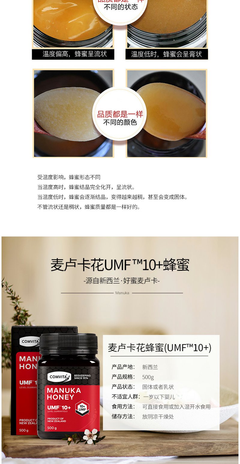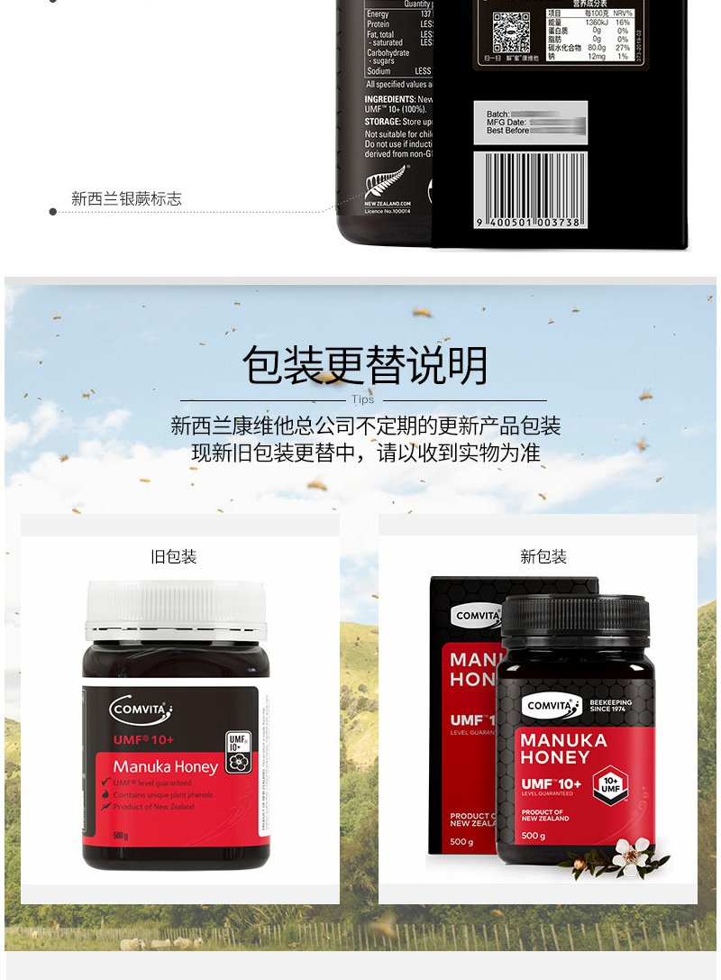 康维他(COMVITA)麦卢卡花蜂蜜UMF10+500g(新西兰原装进口)