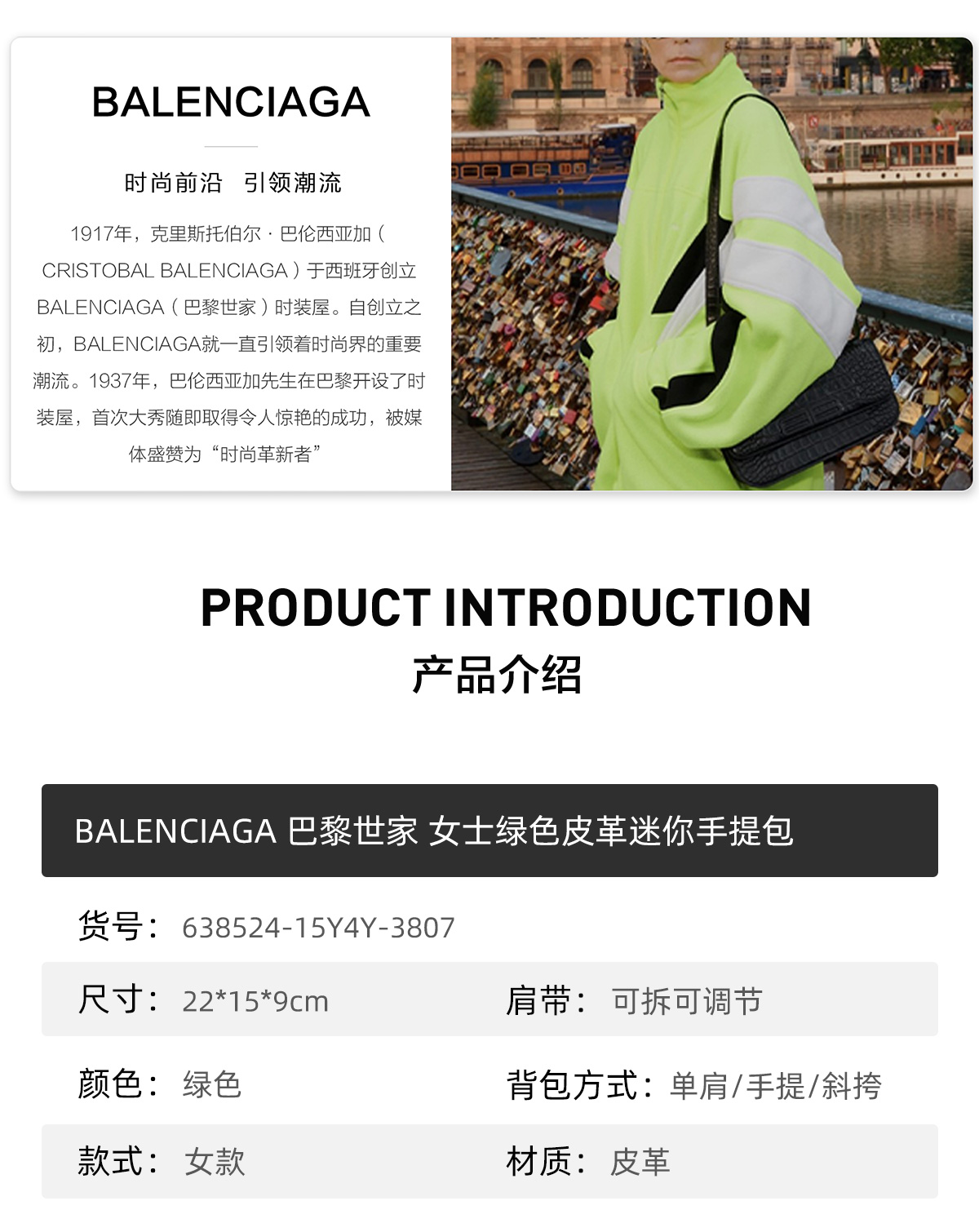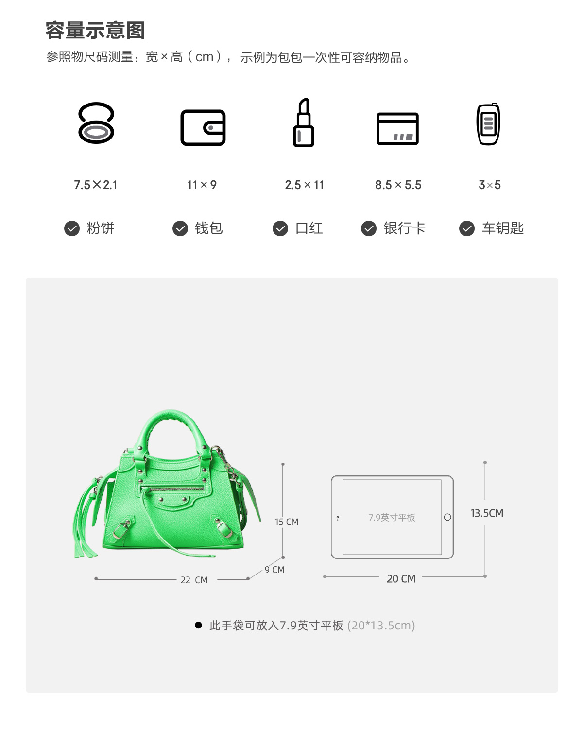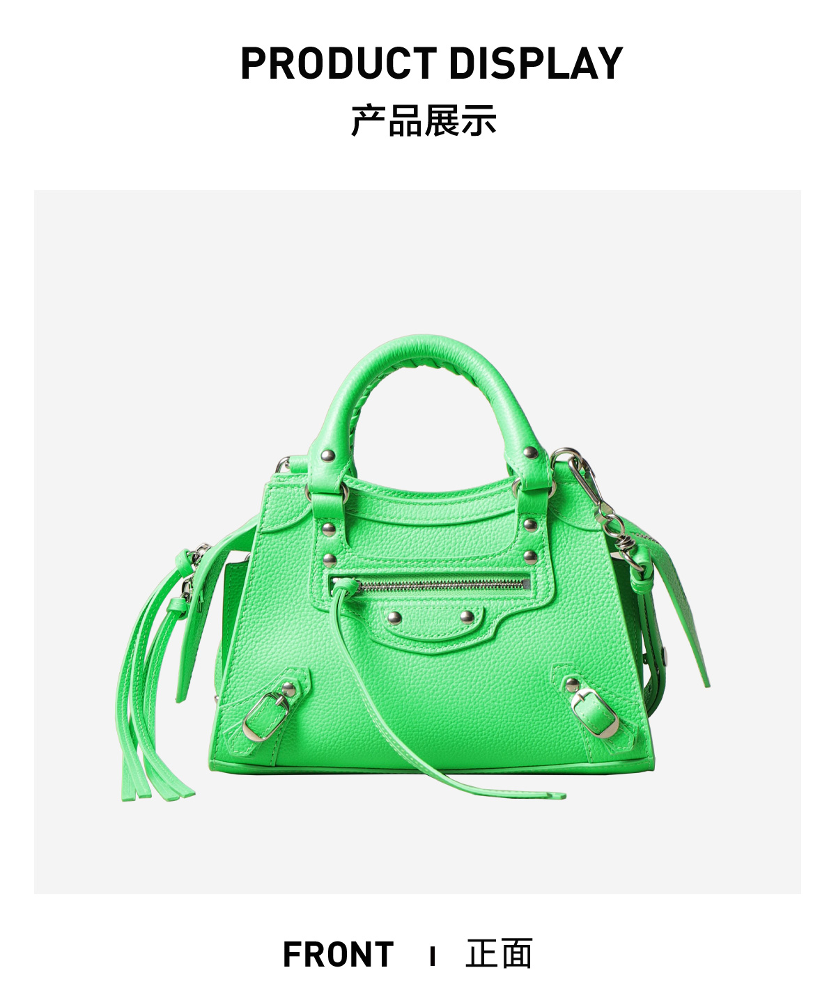 BALENCIAGA 女士荧光绿皮质Neo Classic系列小号手提斜跨包 638524-15Y4Y-3807