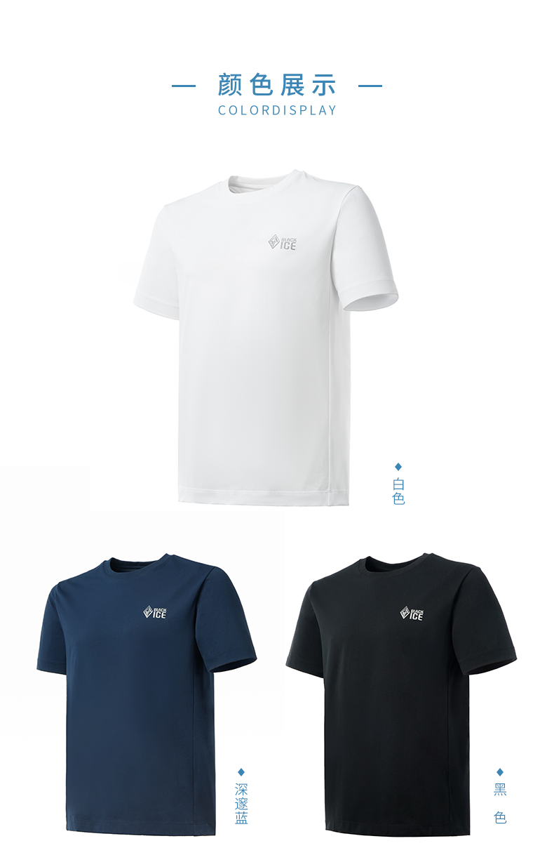 夏季新品黑冰户外休闲棉感速干短袖t恤男 防晒圆领快干上衣1516