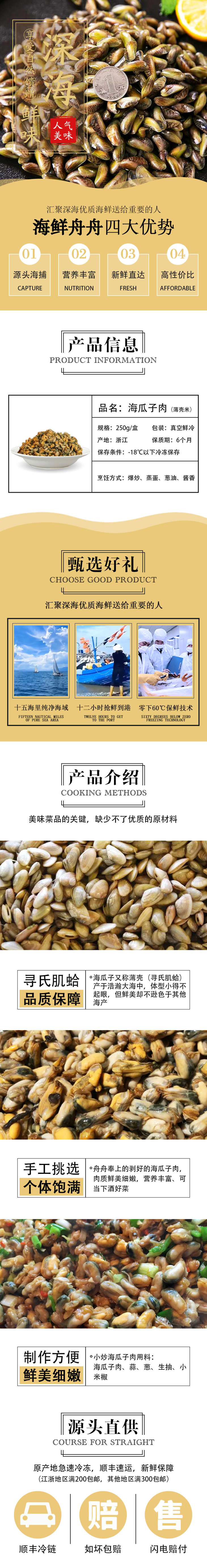 【野生】超低温 海瓜子肉 250g/盒 买2送1