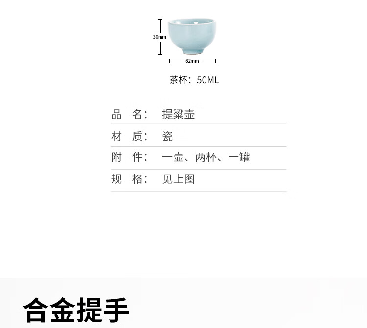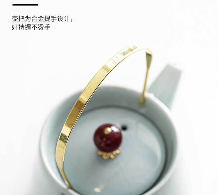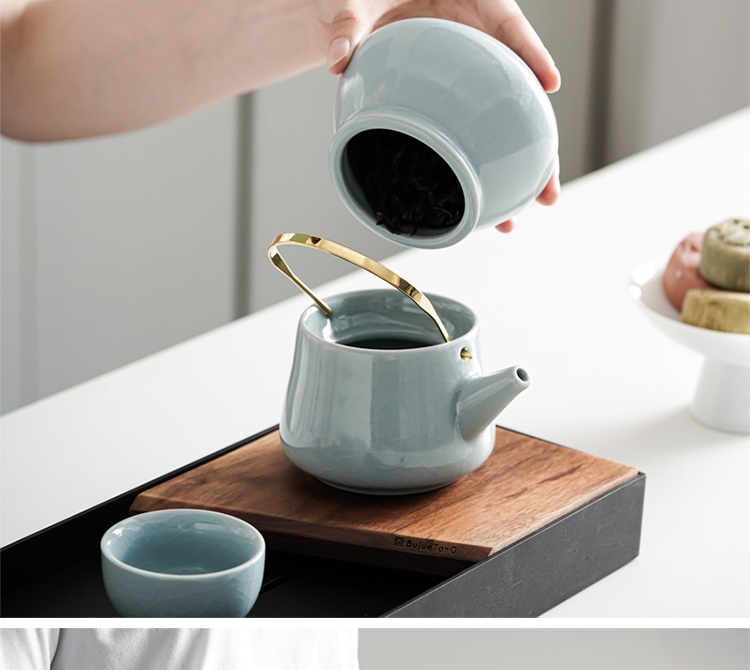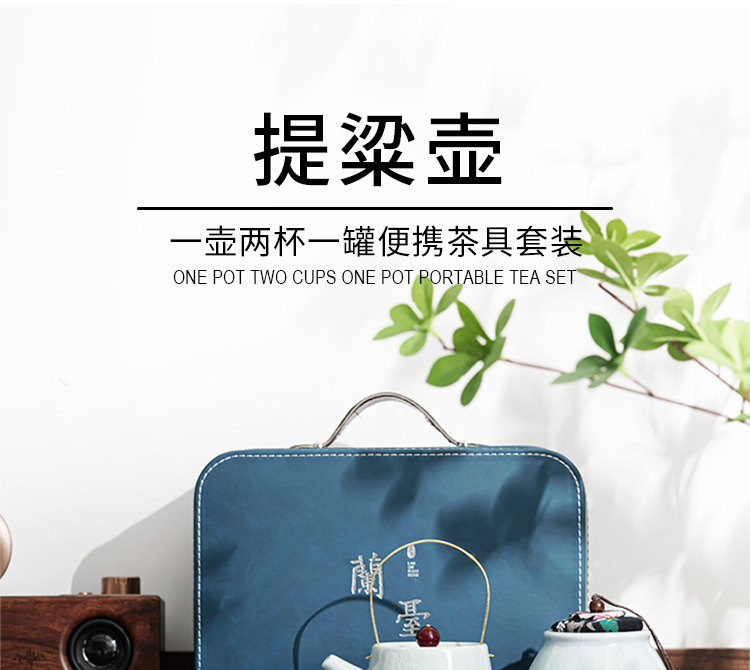 兰台首选 汝窑开片青天釉提梁壶便携茶具泡茶套装 简易功夫茶具旅行