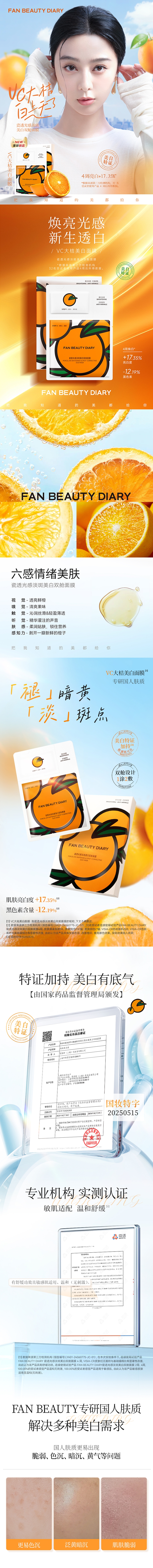【双十二返场】瓷透光感淡斑美白双舱面膜(精华液:3ml+面膜: 30ml)x5片/盒(VC大桔美白面膜)
