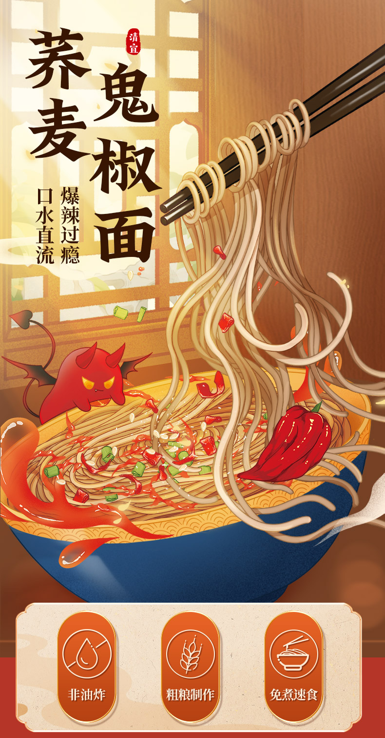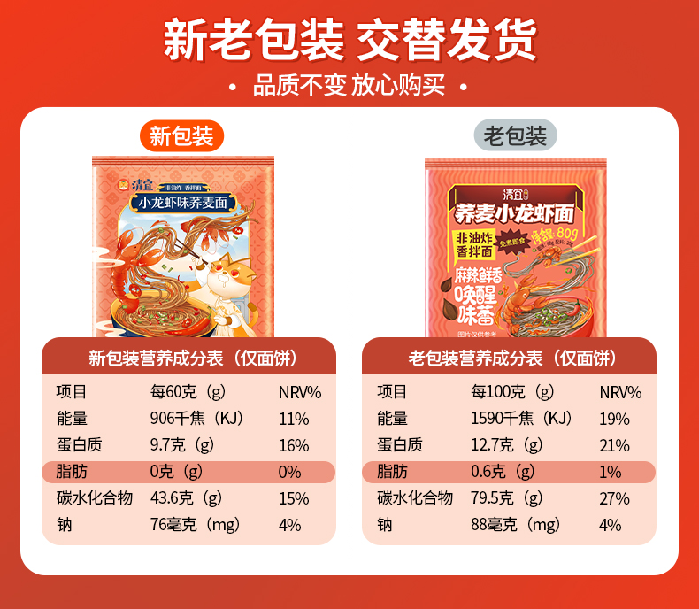 【满99-60】荞麦葱油面80g*4袋