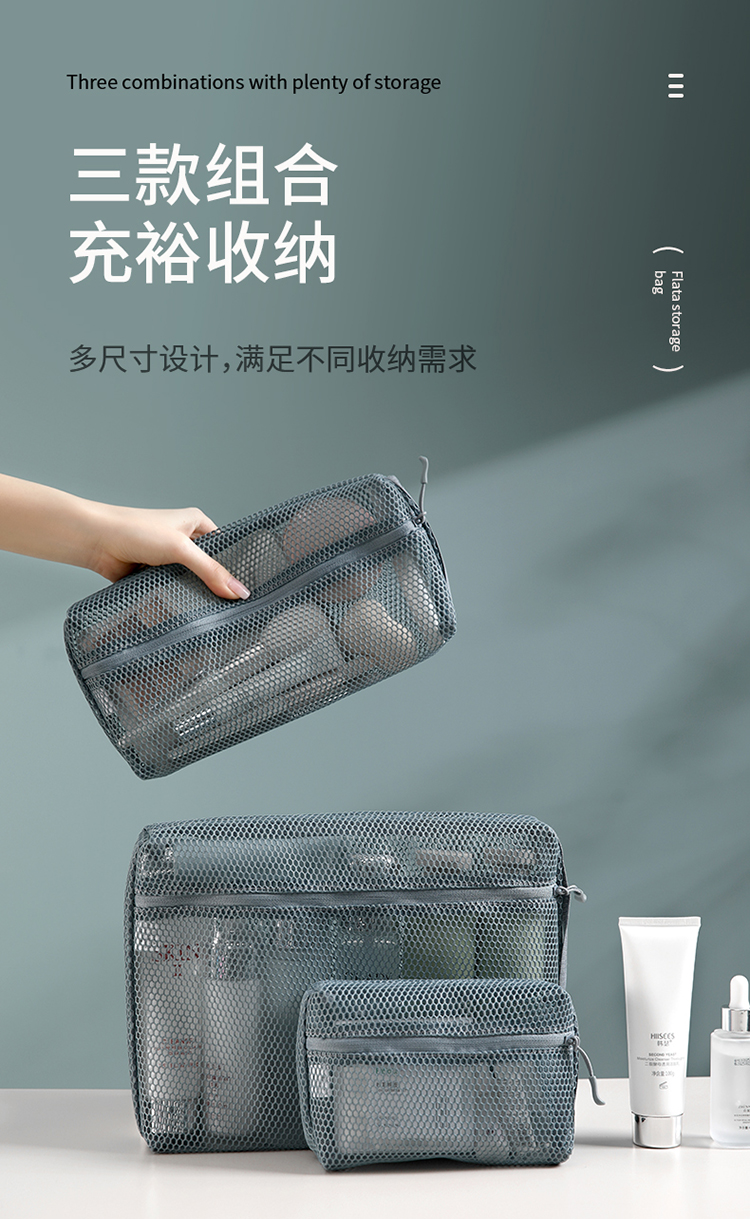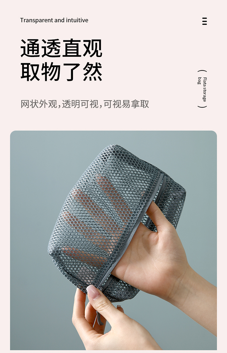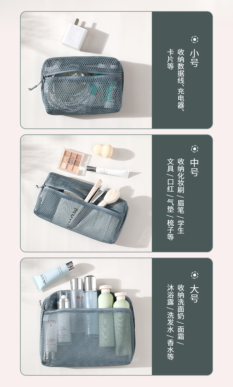 FaSoLa化妆品收纳包透明网纱多功能文具数据线网袋旅行洗漱收纳袋