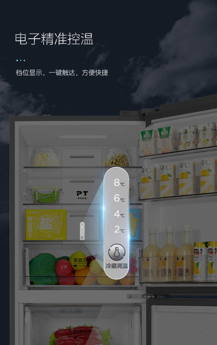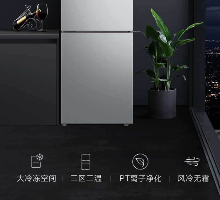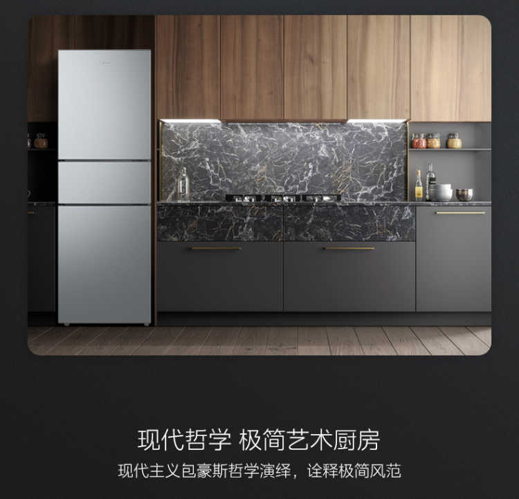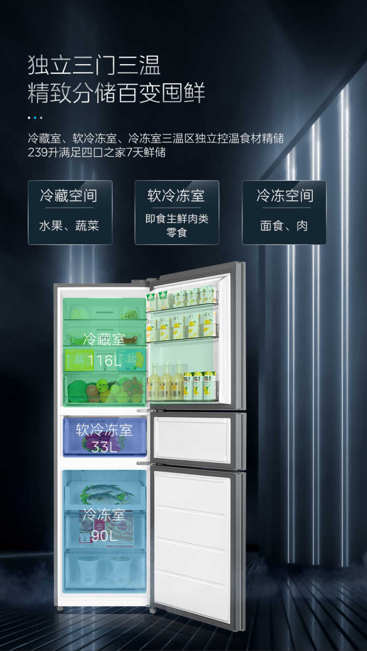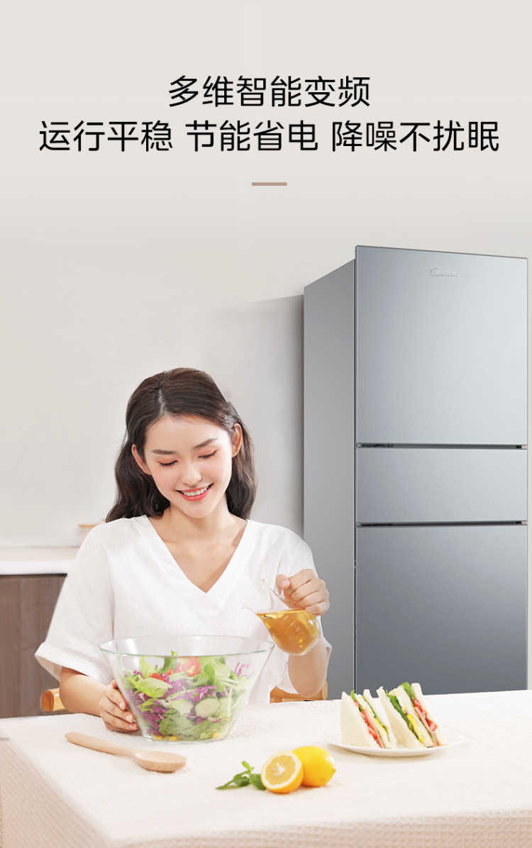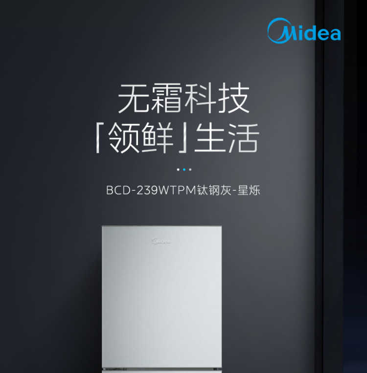 美的冰箱239升BCD-239WTPM 钛钢灰-星烁 三门三温风冷无霜 二级能效