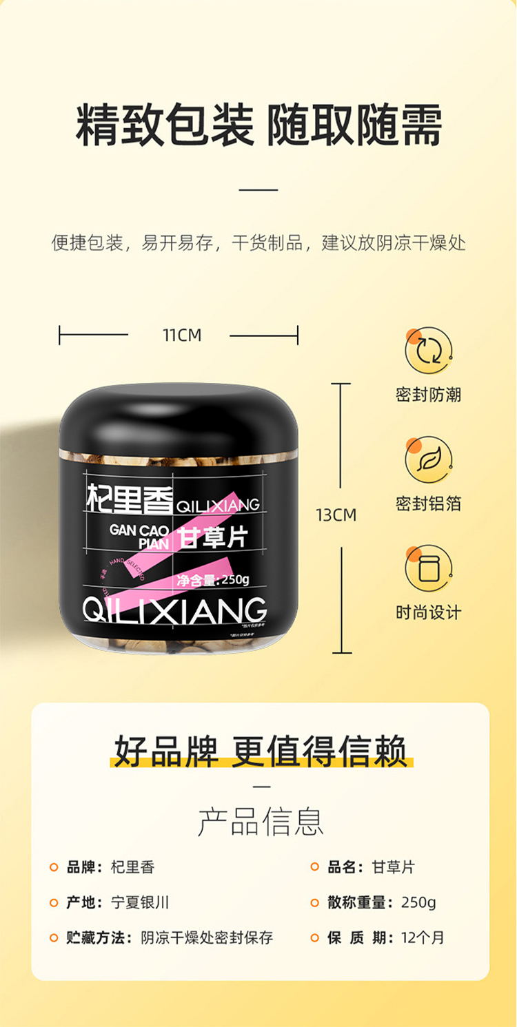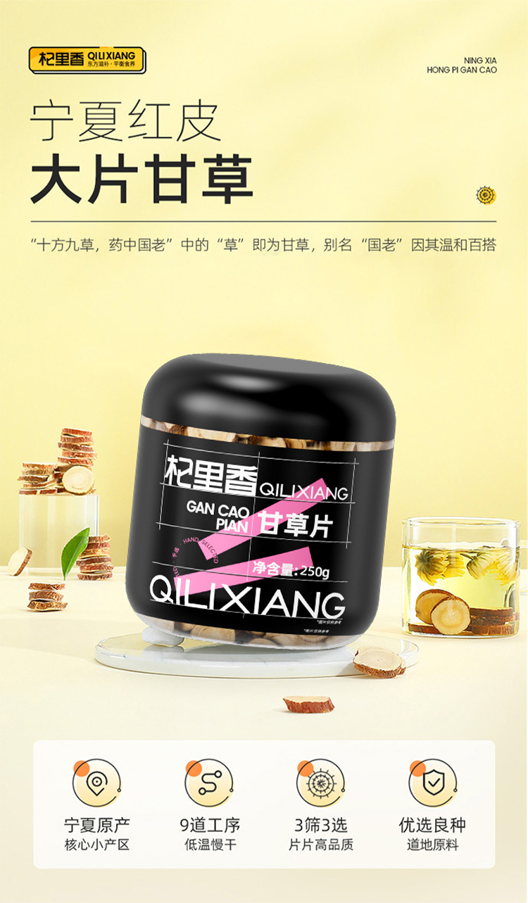 【杞里香宁夏红皮甘草片250g*2罐】泡水茶叶干草片搭配陈皮黄芪甘草干姜防已