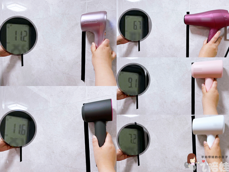 其实我上手就能感觉出风速的不同了,不过为了更客观一点,我还是用风速仪,在距离出风口40cm的地方测试。结果我家的高速吹风机11.2m/s,媲美某森的11.6m/s,明显领先另外三款百元机。