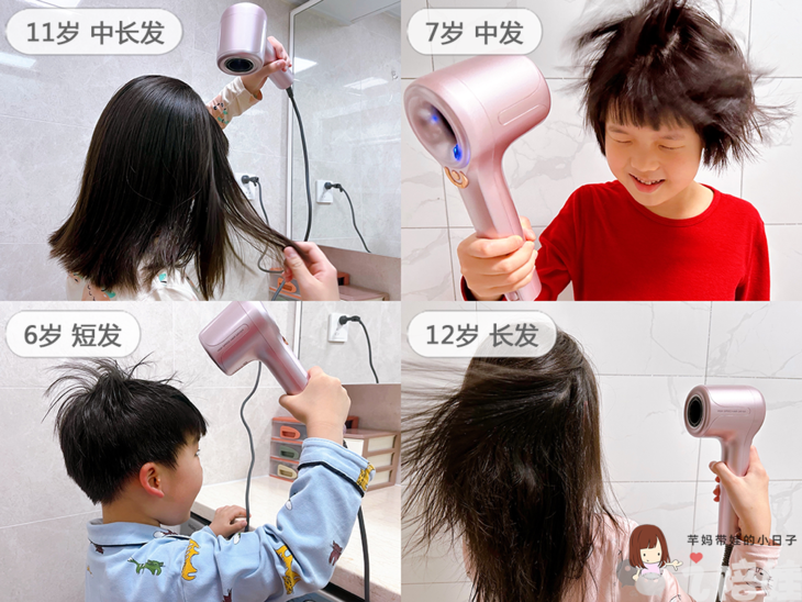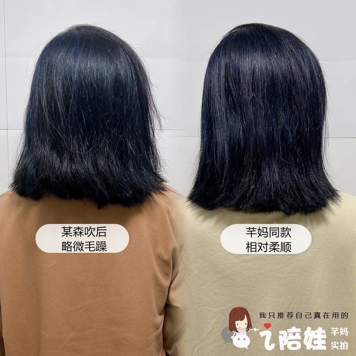 但是它不伤头发(控温好,吹着不烫头皮),吹完的头发也更顺(亿级负离子形成保湿水膜)。