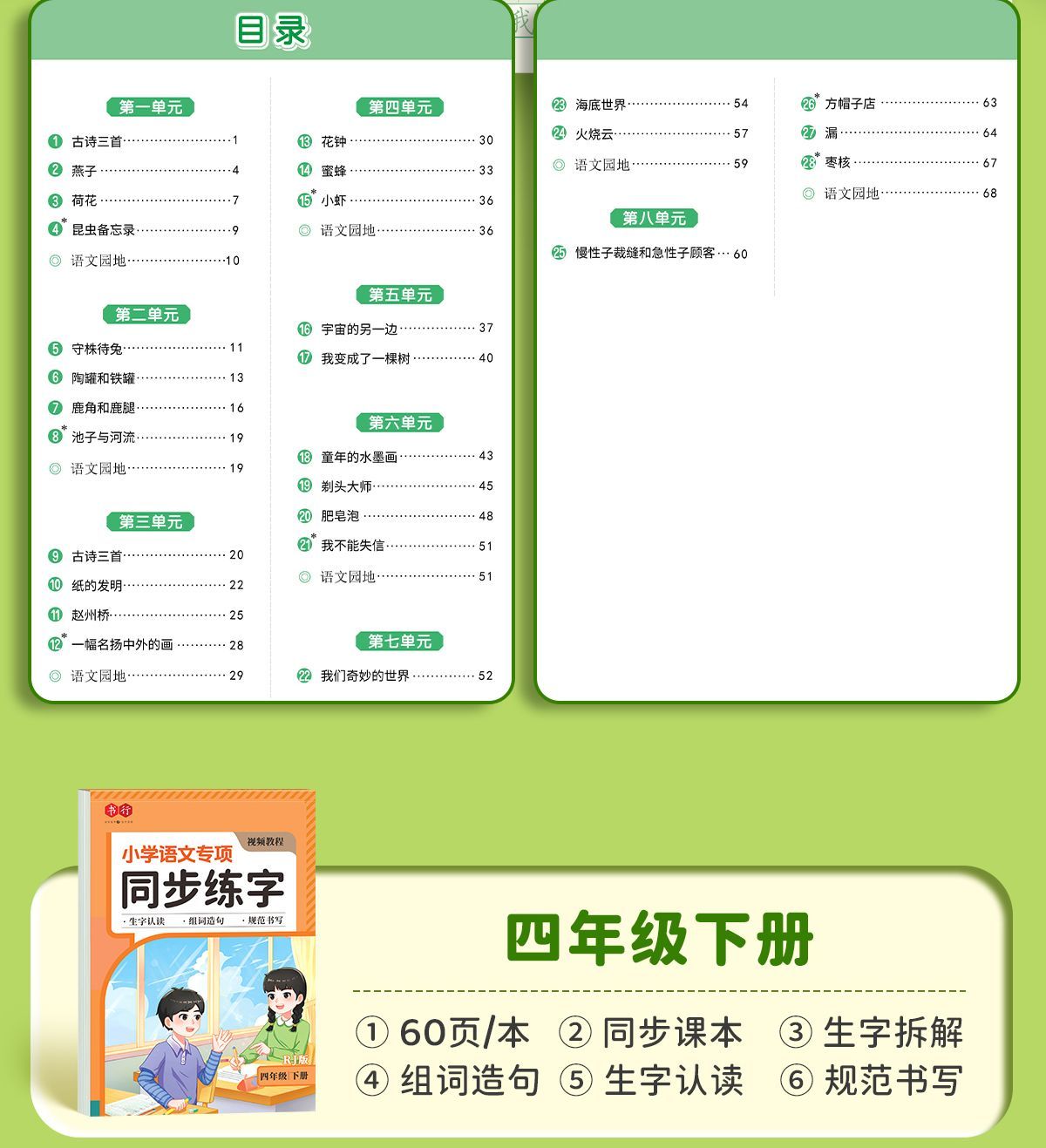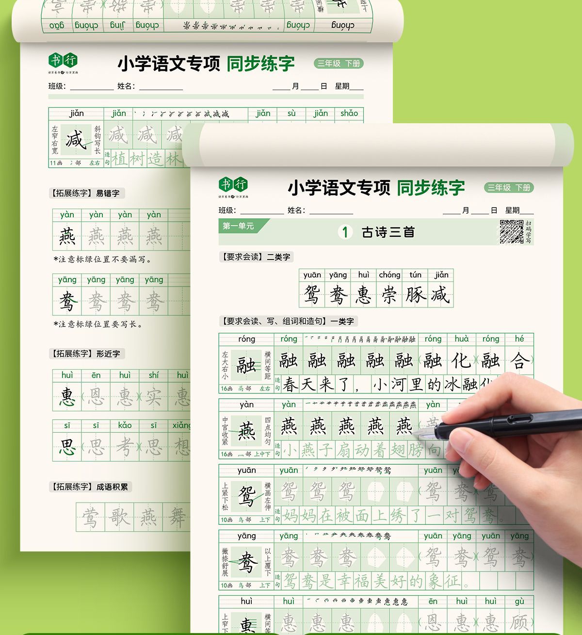 【书行】小学同步练字帖一年级二年级三年级四年级五六年级下册字帖描红字贴人教版语文同步小学生硬笔练字帖专用正版每日一练