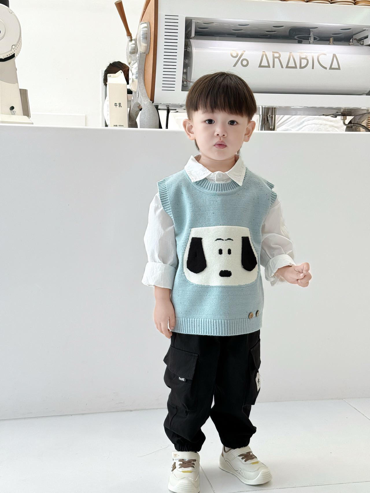 胸前的可爱小狗图案萌趣十足,还有立体的耳朵