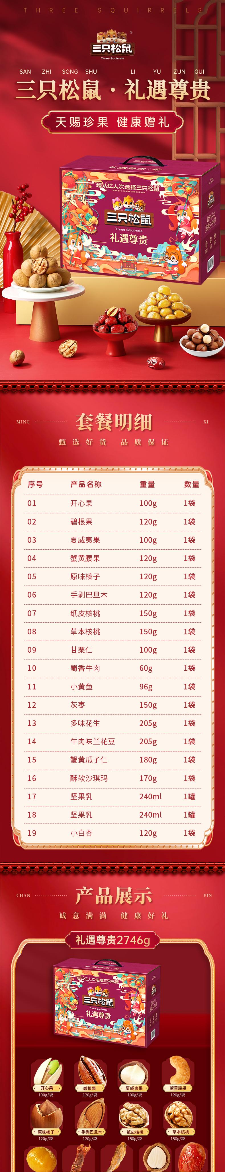 【三只松鼠】 礼遇尊贵 坚果礼盒 约2.746kg19袋装