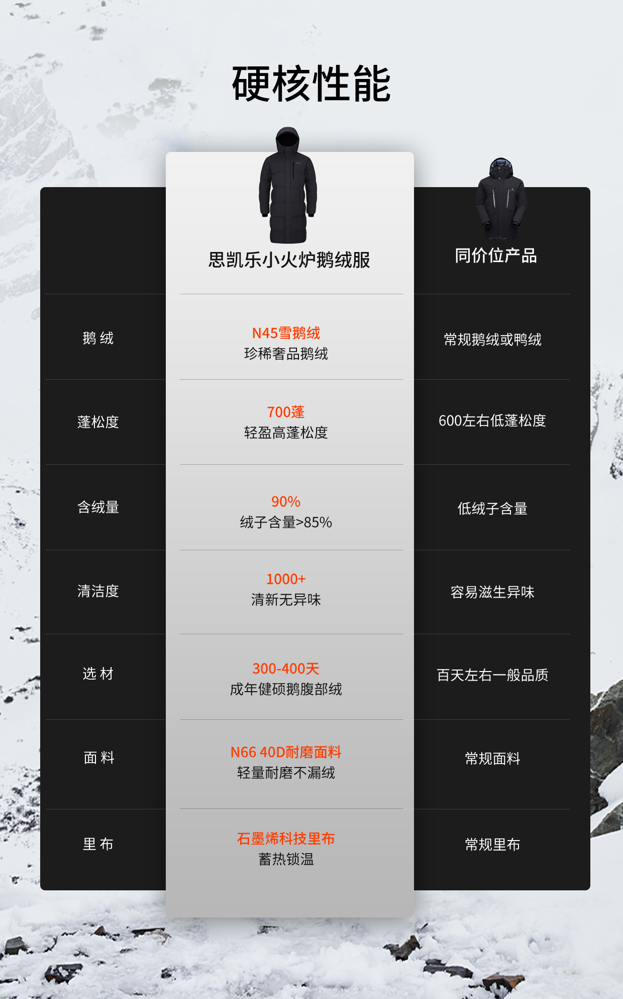 +【乐粉专属】小火炉思凯乐户外羽绒服女款25冬加厚长款700蓬鹅绒服外套男F6104508/F6114508