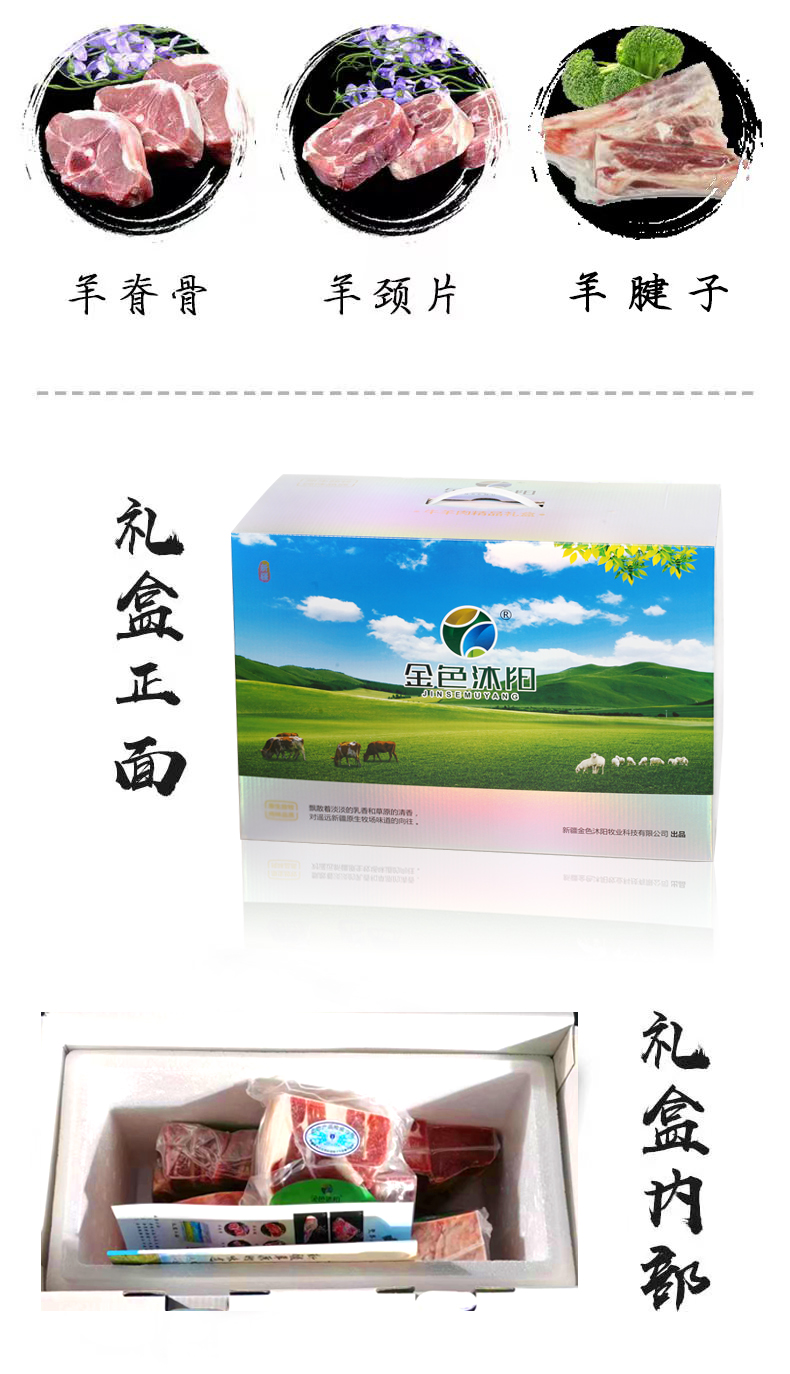 羊后腿500g*2份 羊前腿500g*2份 羊排500g*2份 羊蝎子500g*1份 羊颈片500g*1份 牛后腿500g*2份牛腩500g*2份 牛寸排500g*2份 牛腱子1000g*1份