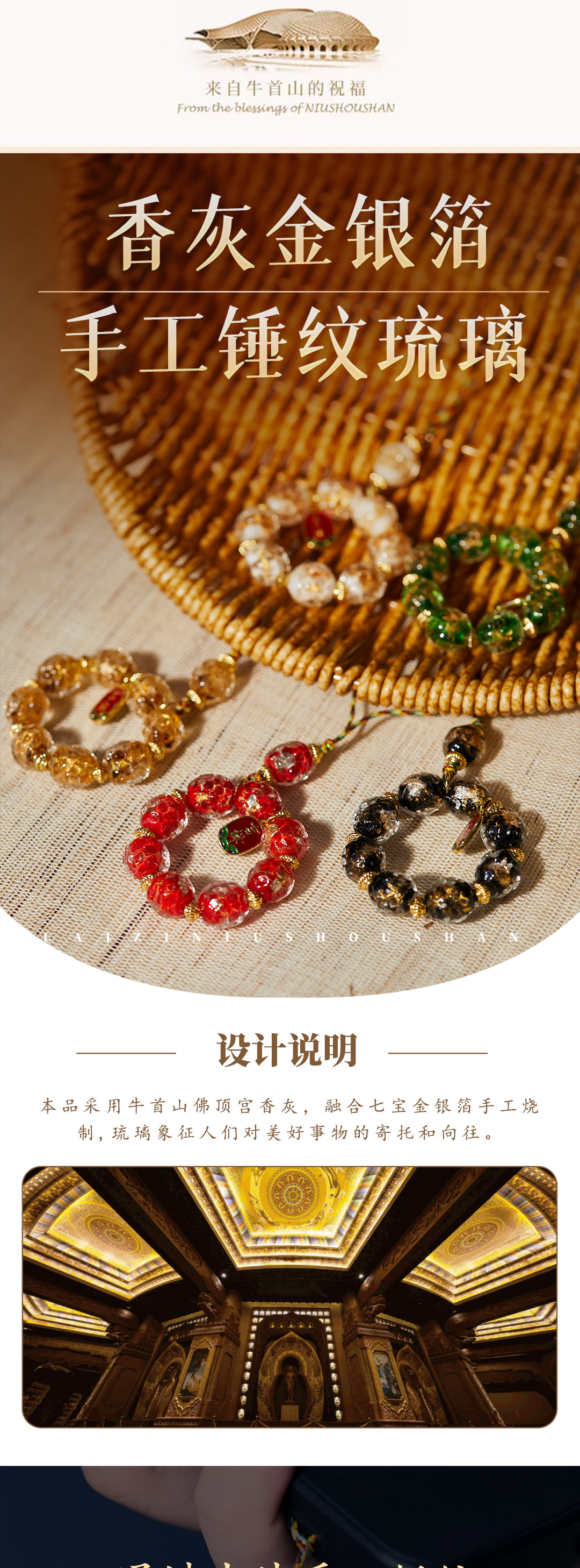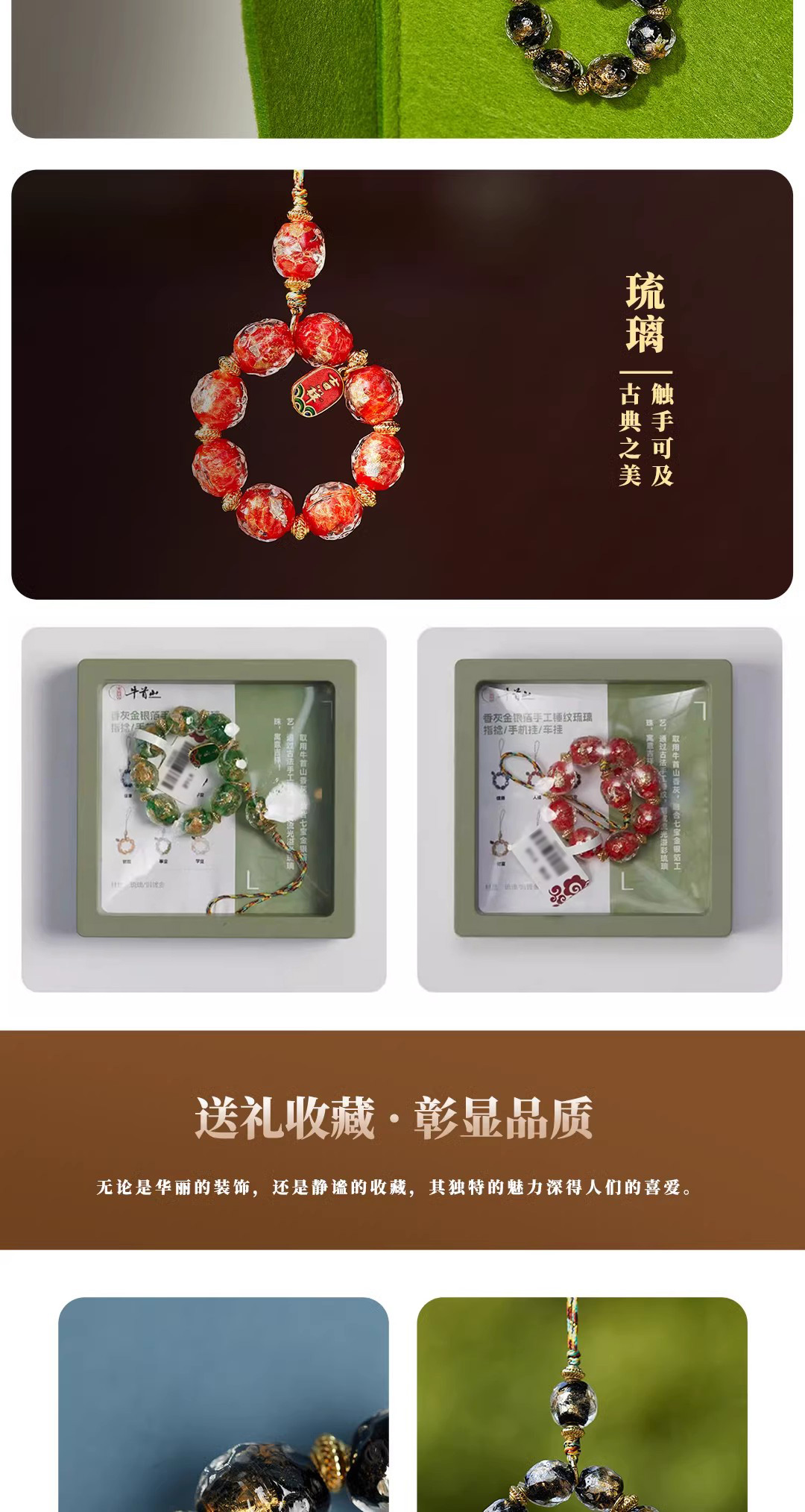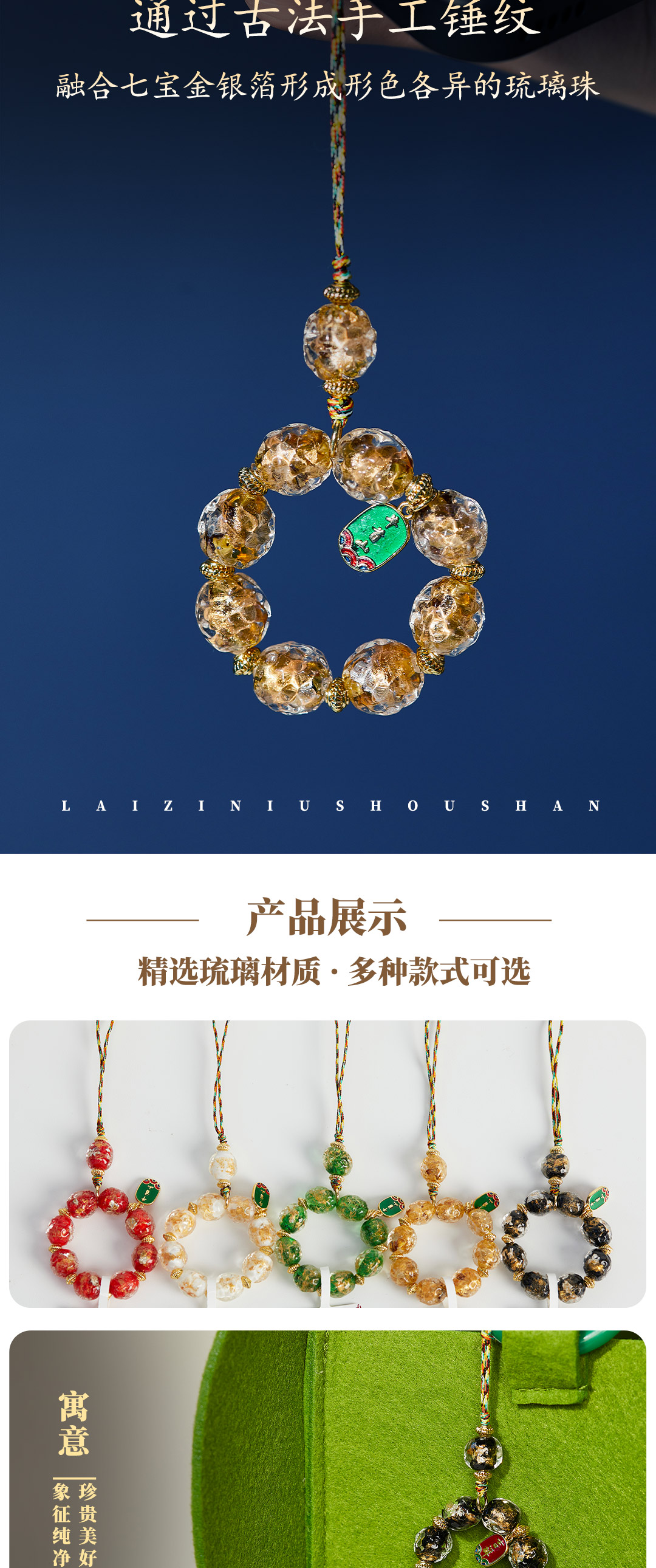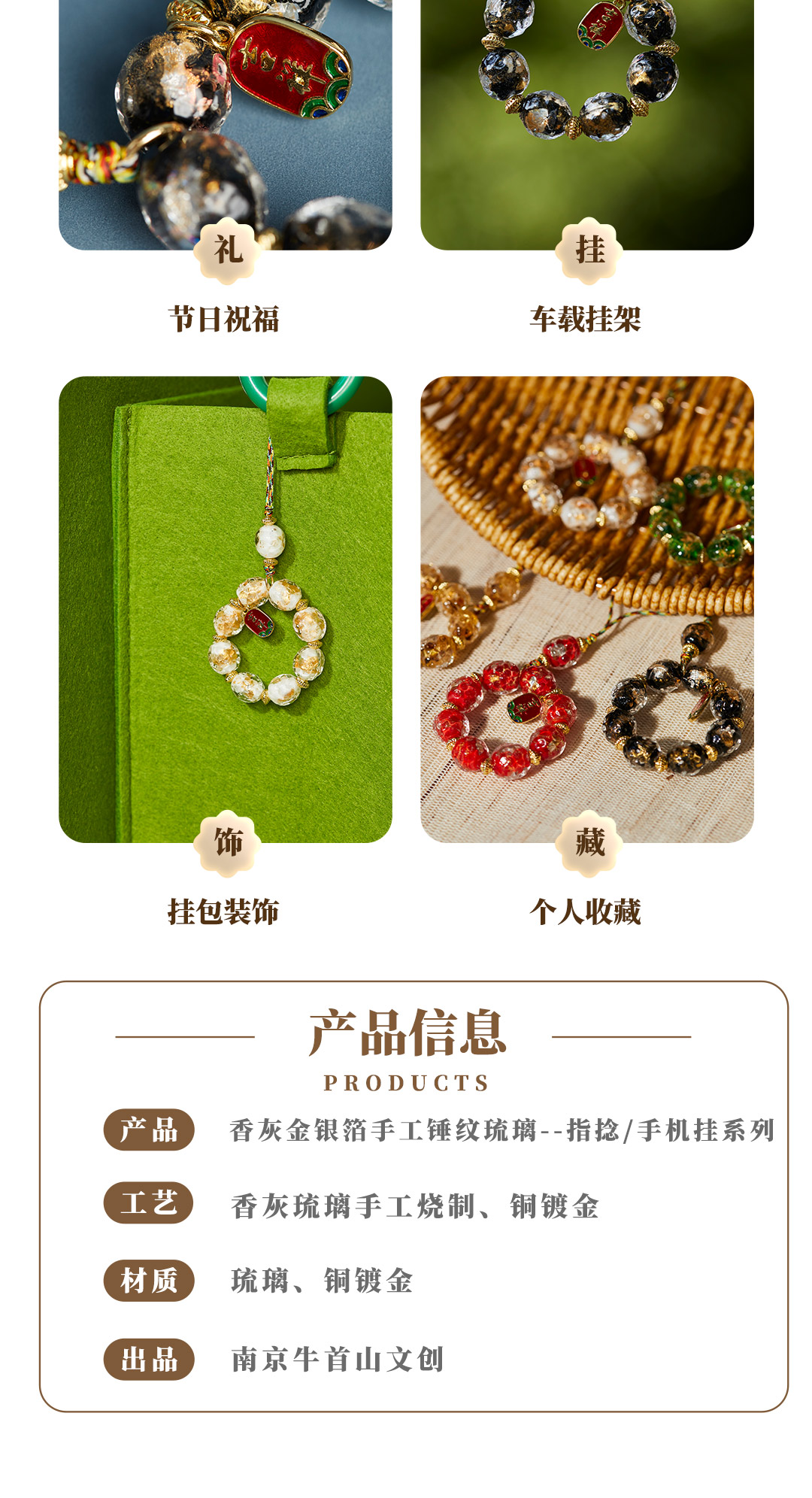 牛首山文创香灰金银箔手工锤纹琉璃指捻手机挂坠吉祥好运祝福礼物