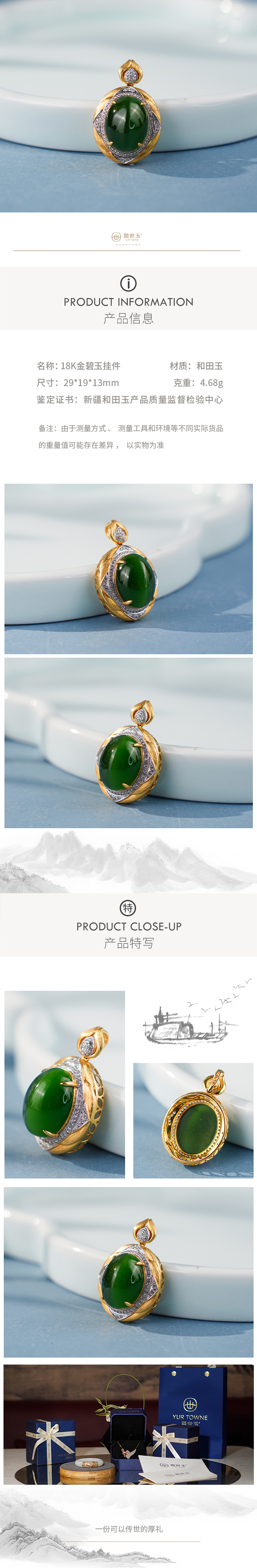 「鎏金岁月」系列【铮玥】金镶碧玉吊坠
