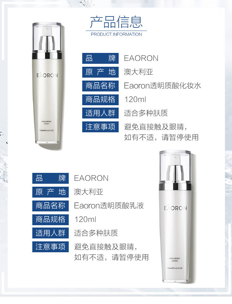 【中欧班列】澳洲Eaoron水光针爽肤水乳液120ml SZQR