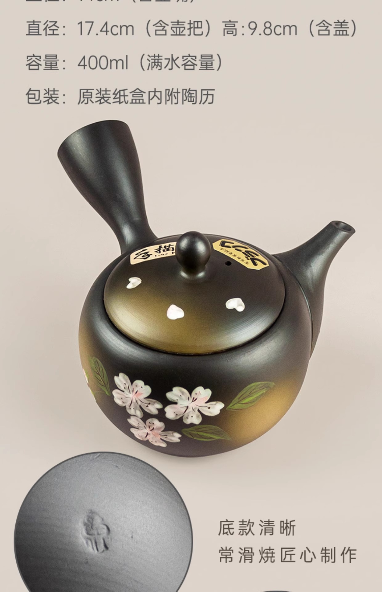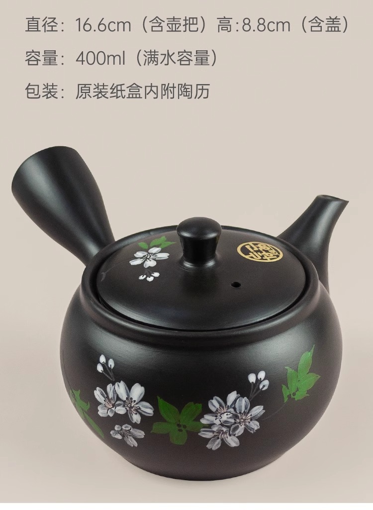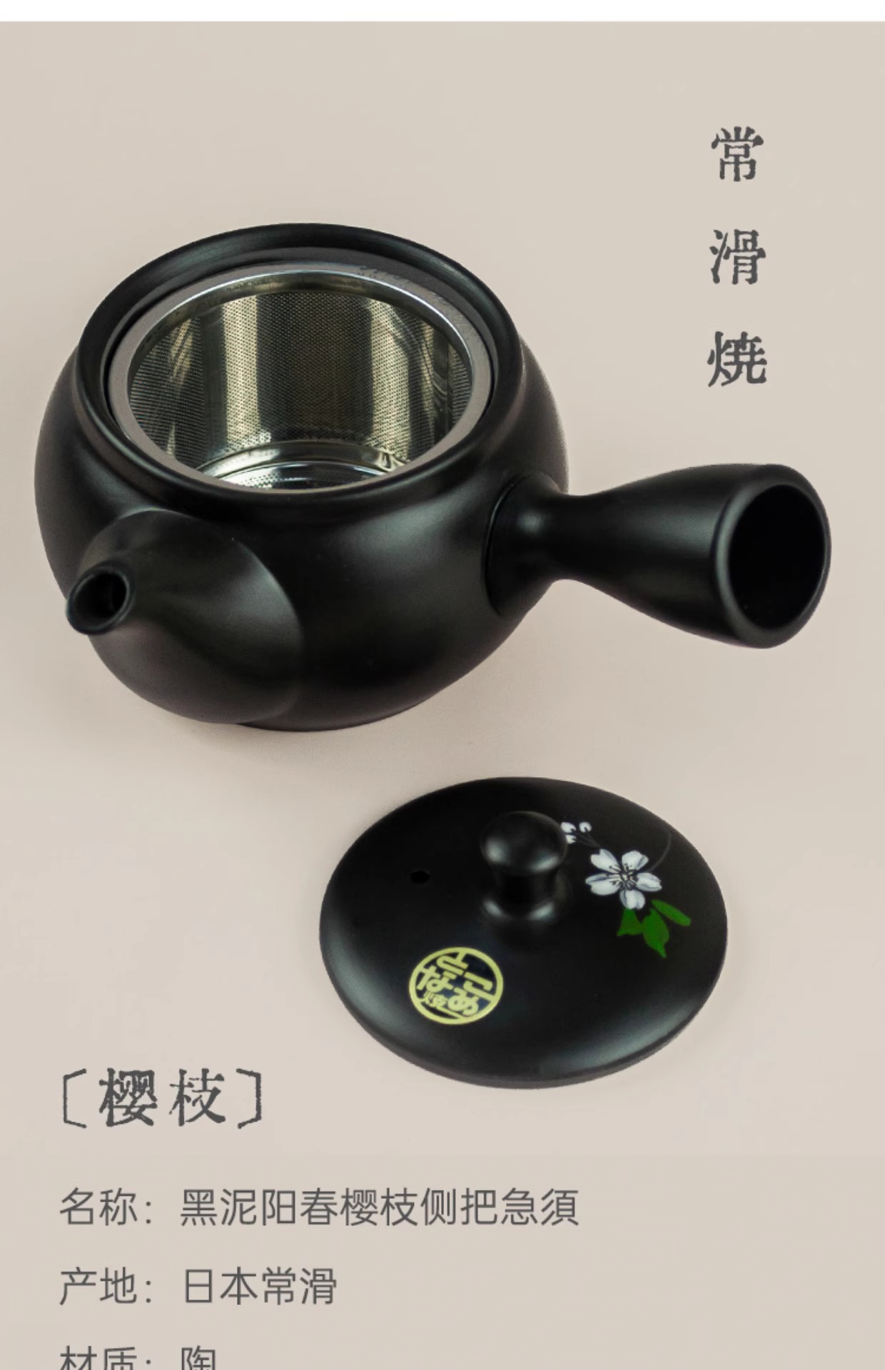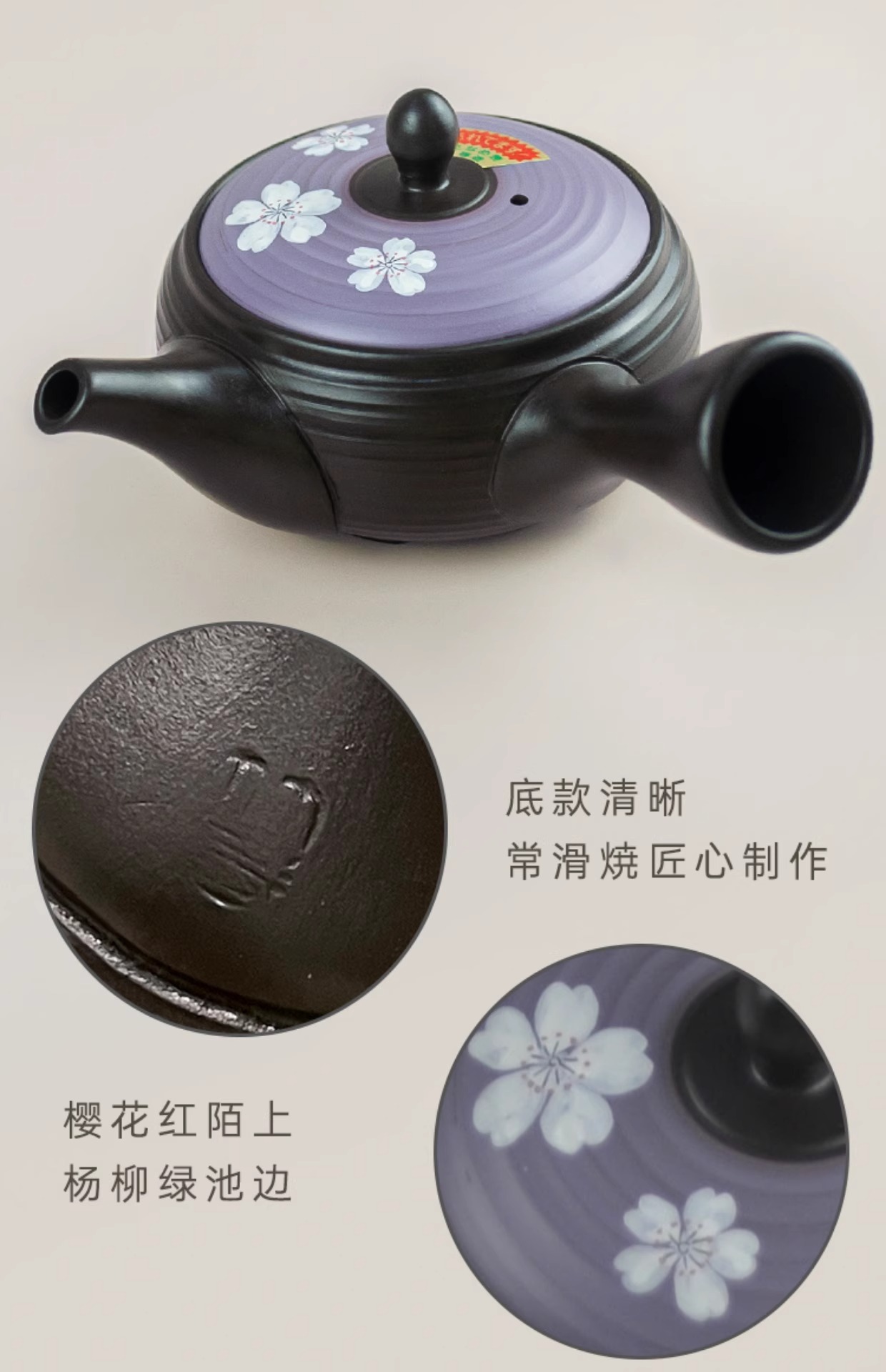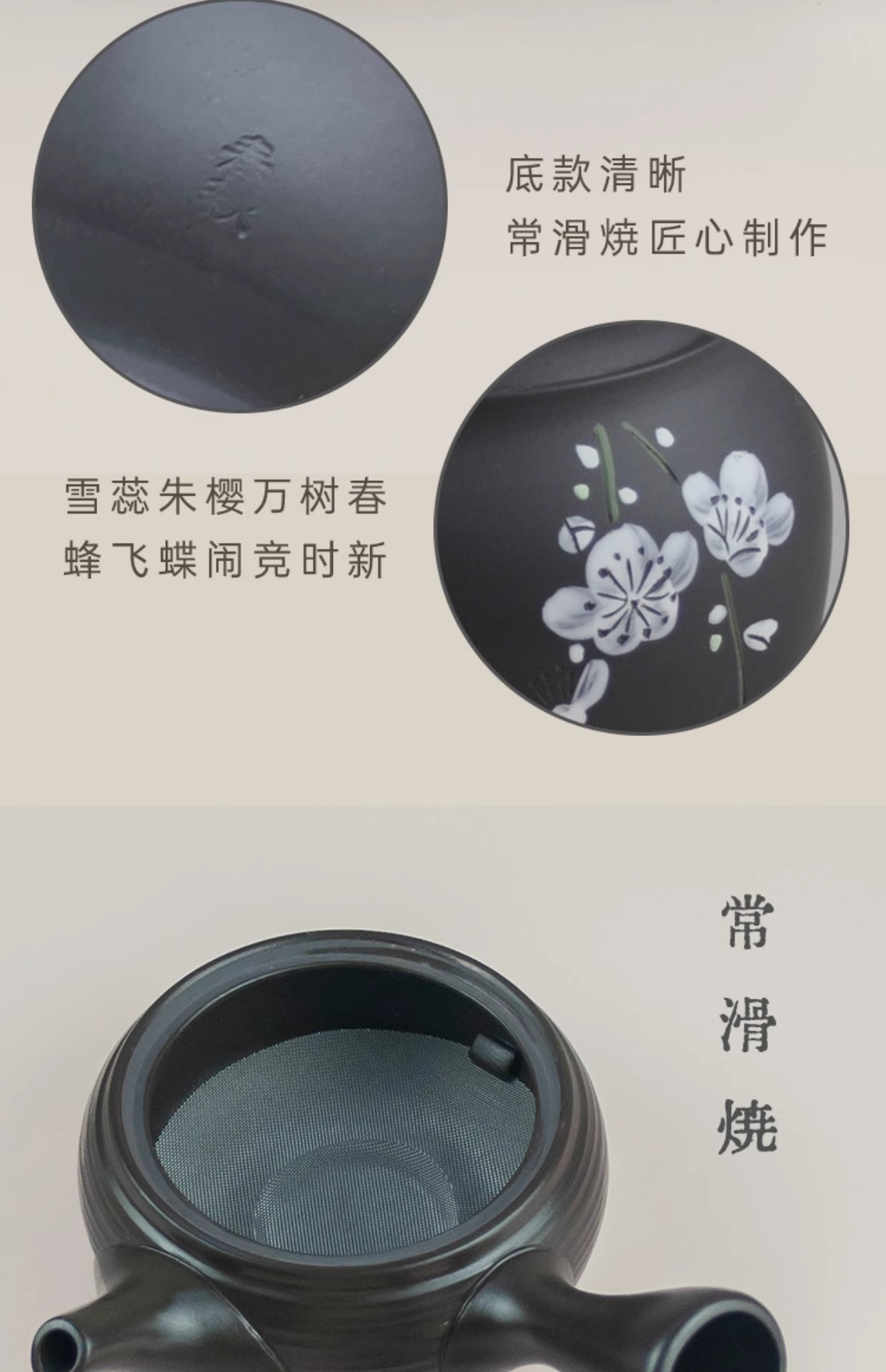 日本进口常滑烧阳春系列侧把急须泡茶壶日式樱花家用滤网功夫茶具【不支持补差,非质量问题不退不换】S
