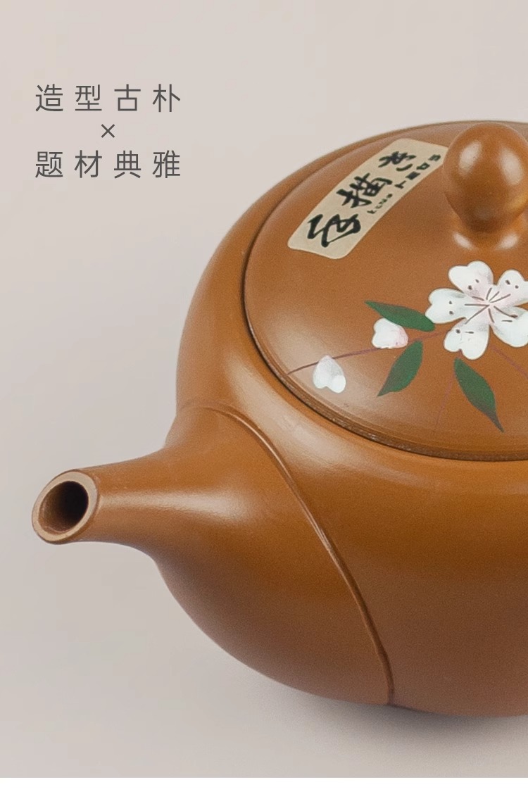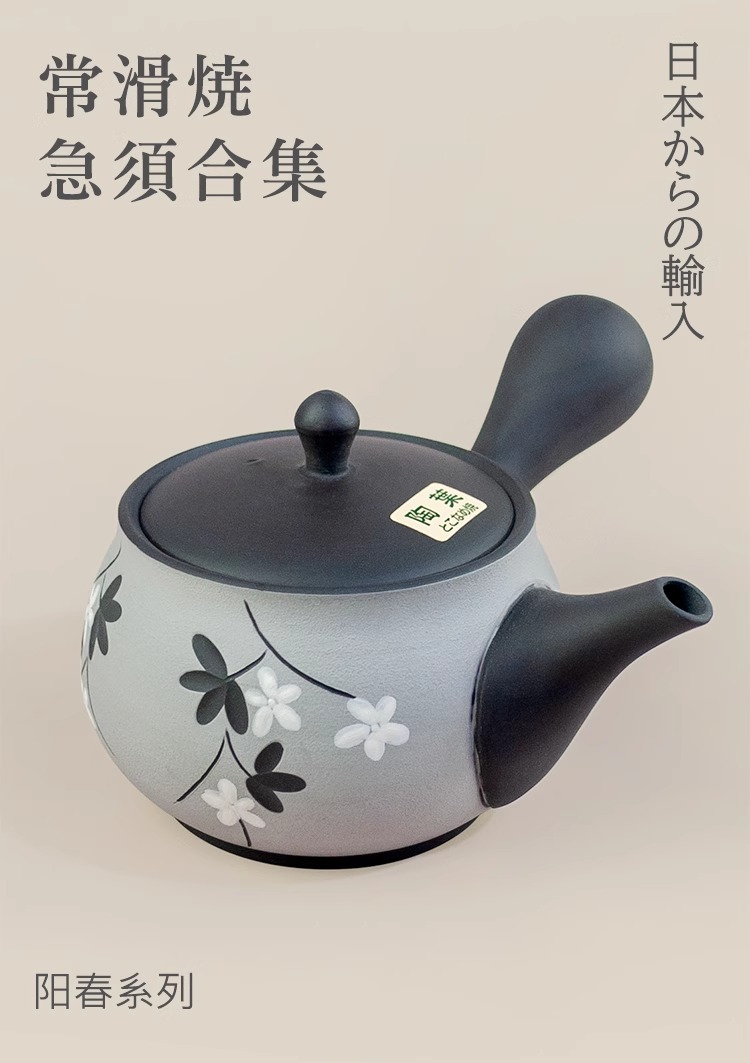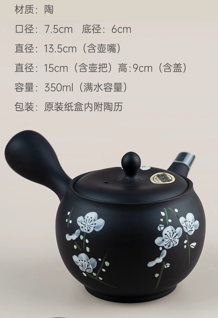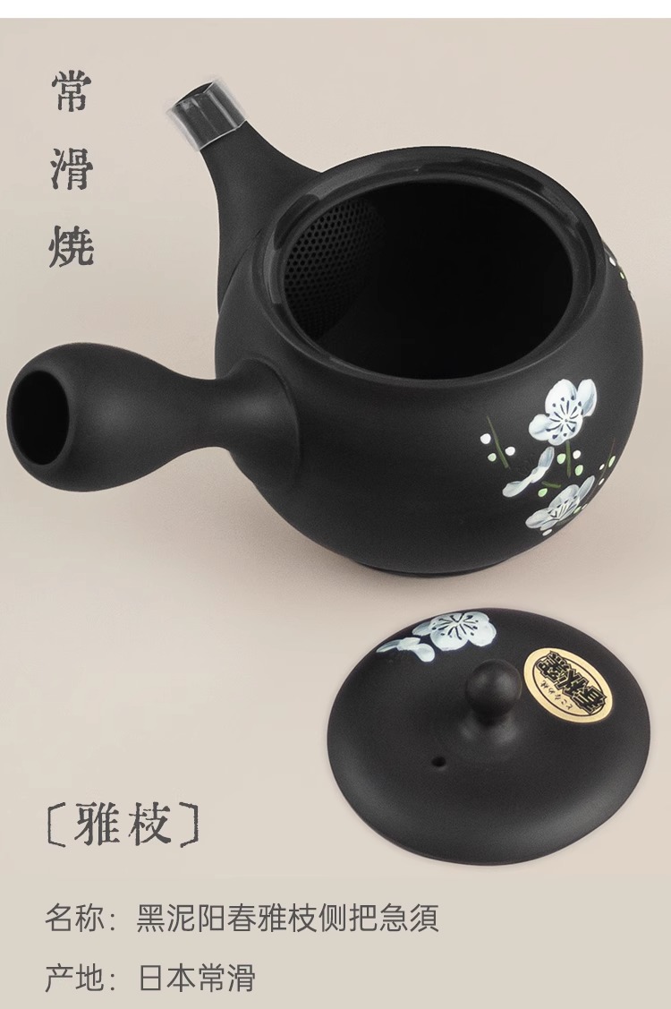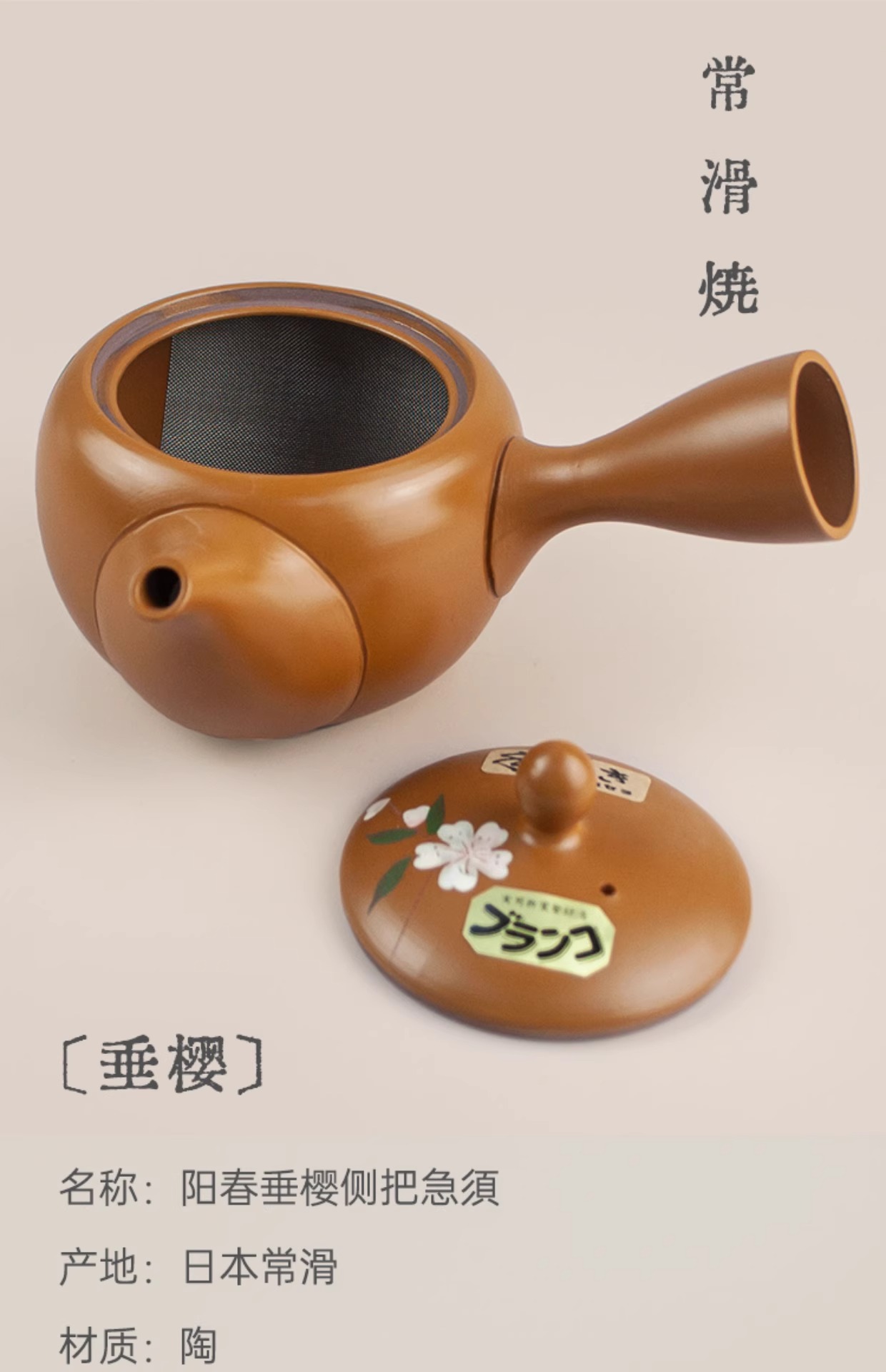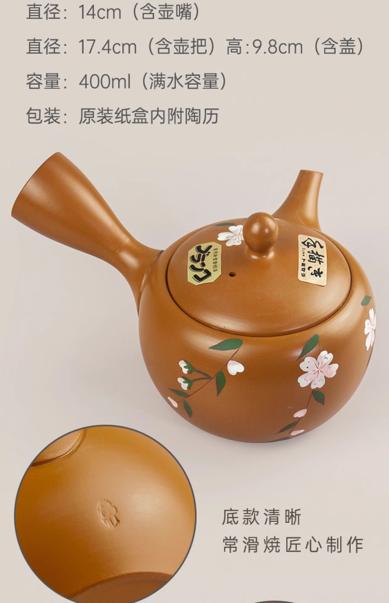 日本进口常滑烧阳春系列侧把急须泡茶壶日式樱花家用滤网功夫茶具【不支持补差,非质量问题不退不换】S