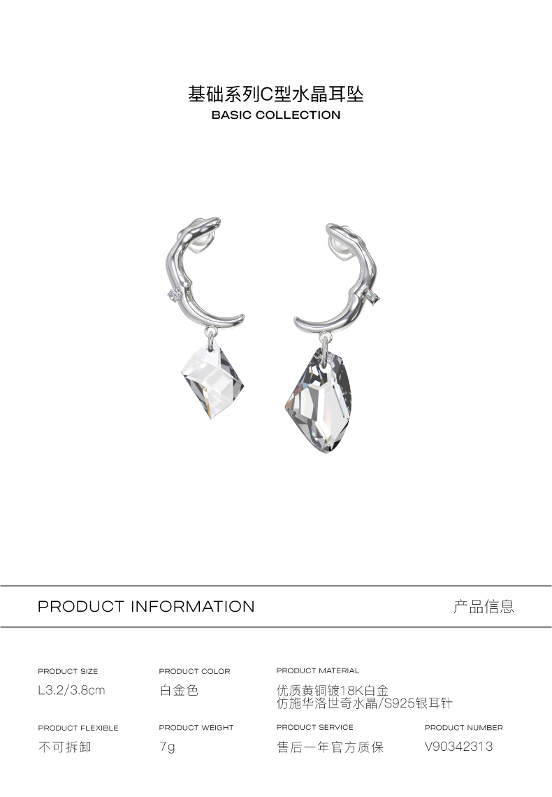 KVK耳环2021年新款潮高级感水晶耳坠网红耳饰防过敏耳针时尚耳钉