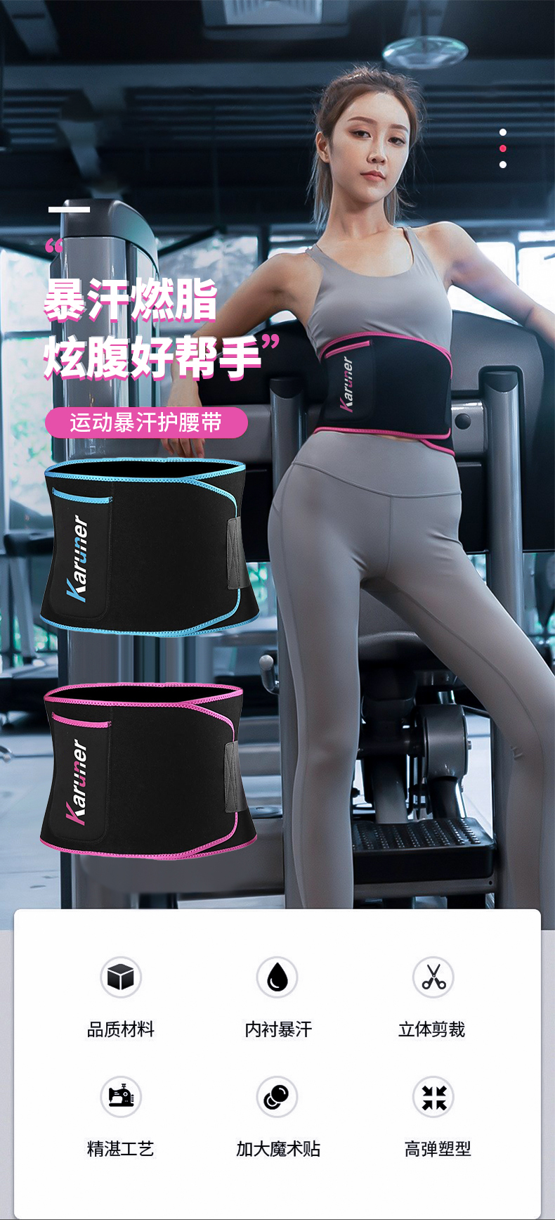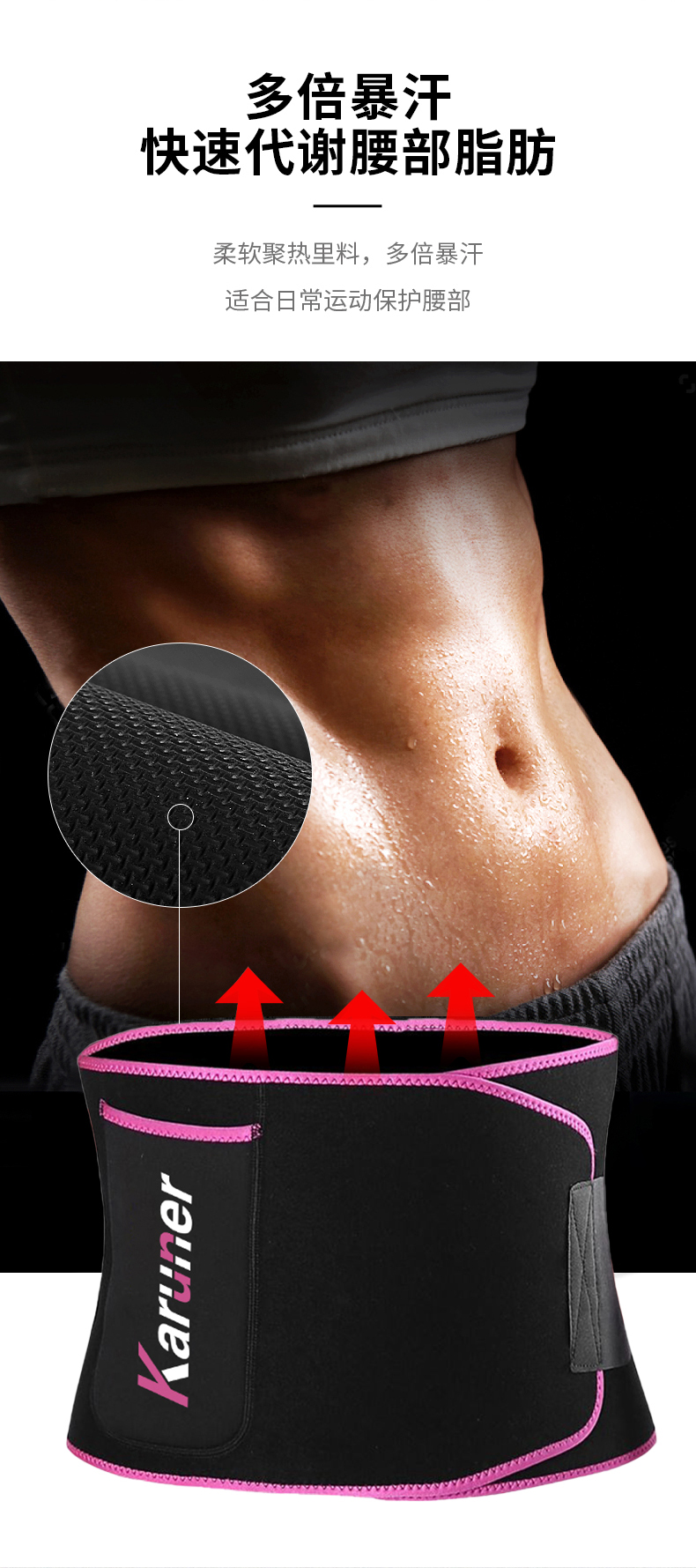 【精选】karuner运动暴汗护腰带(六色可选) 锁边设计 松紧可调