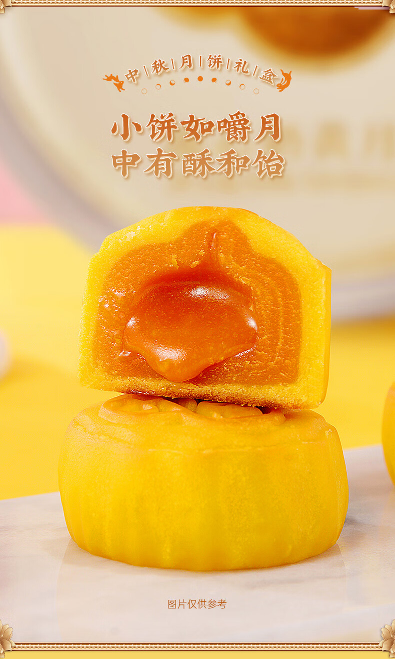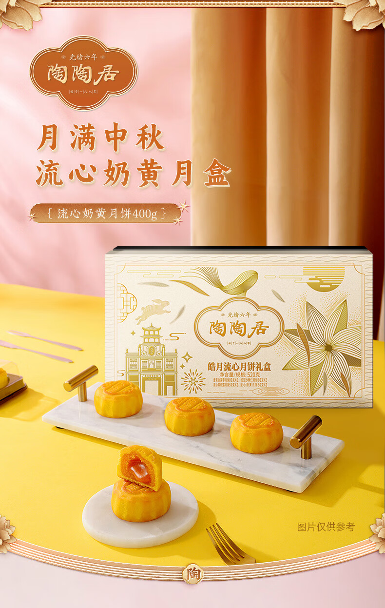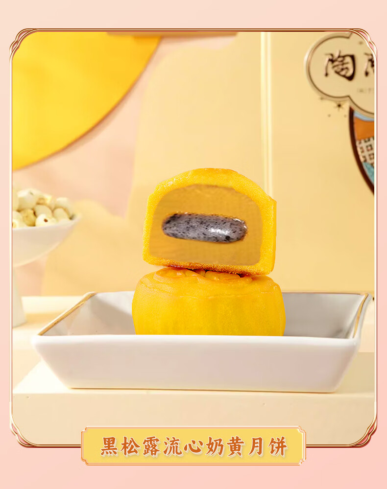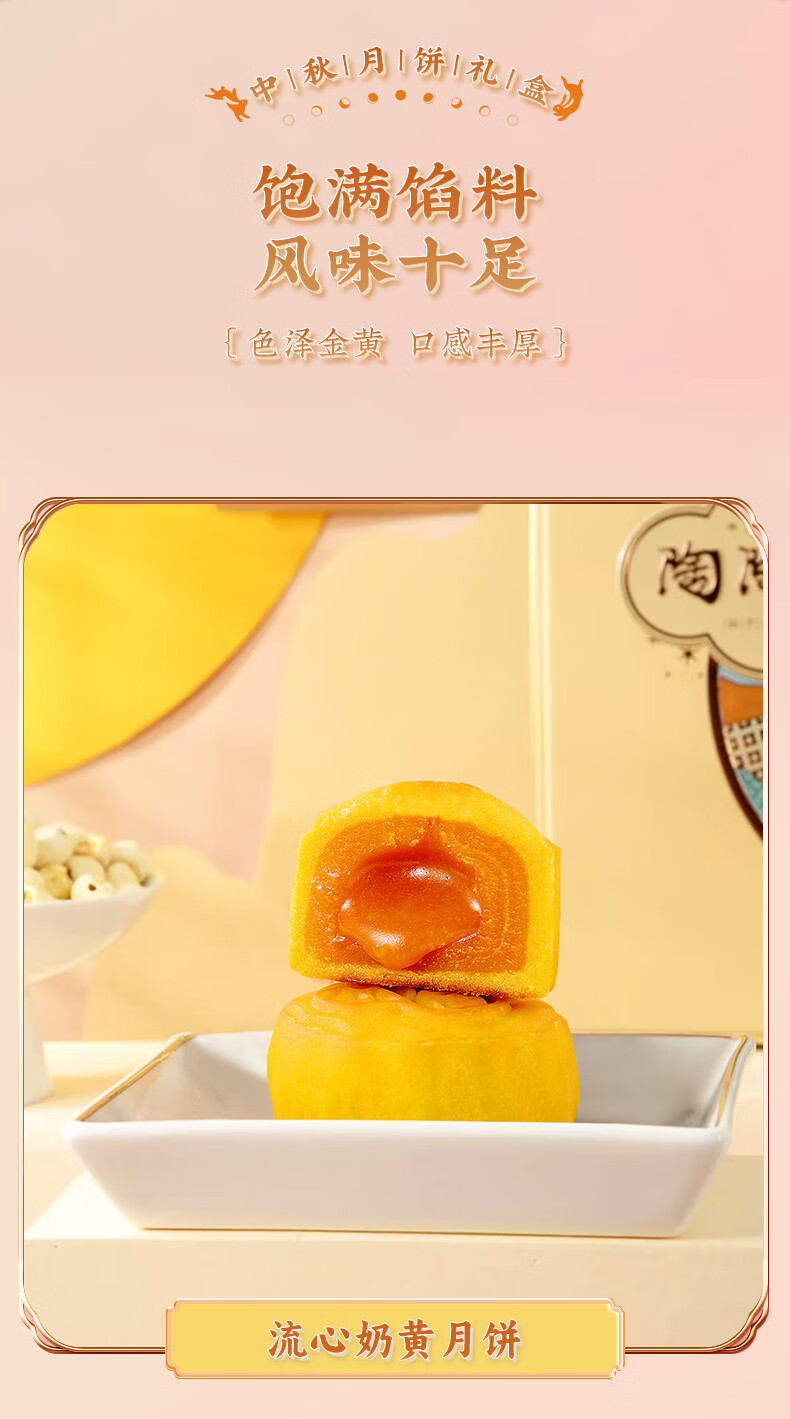 陶陶居广州酒家黑松露流心奶黄月饼蛋黄白莲蓉月饼广式中秋月饼礼盒 陶陶皓月流心奶黄月饼礼盒 520g