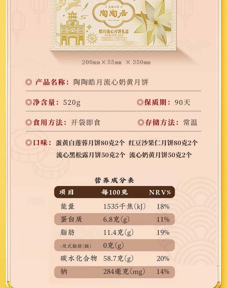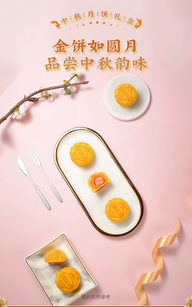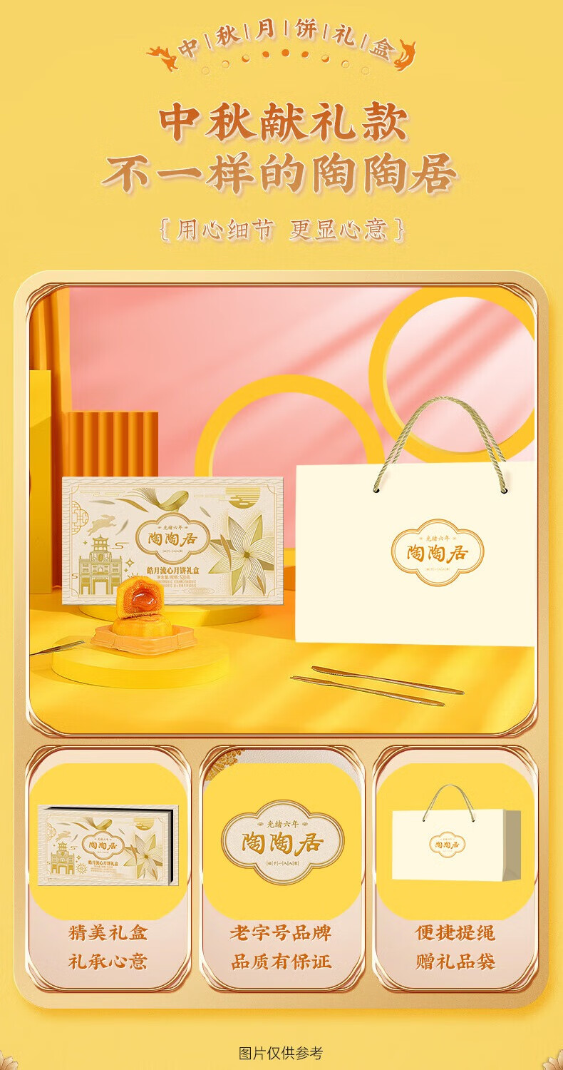 陶陶居广州酒家黑松露流心奶黄月饼蛋黄白莲蓉月饼广式中秋月饼礼盒 陶陶皓月流心奶黄月饼礼盒 520g