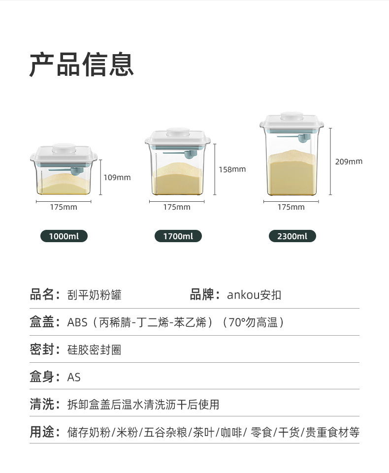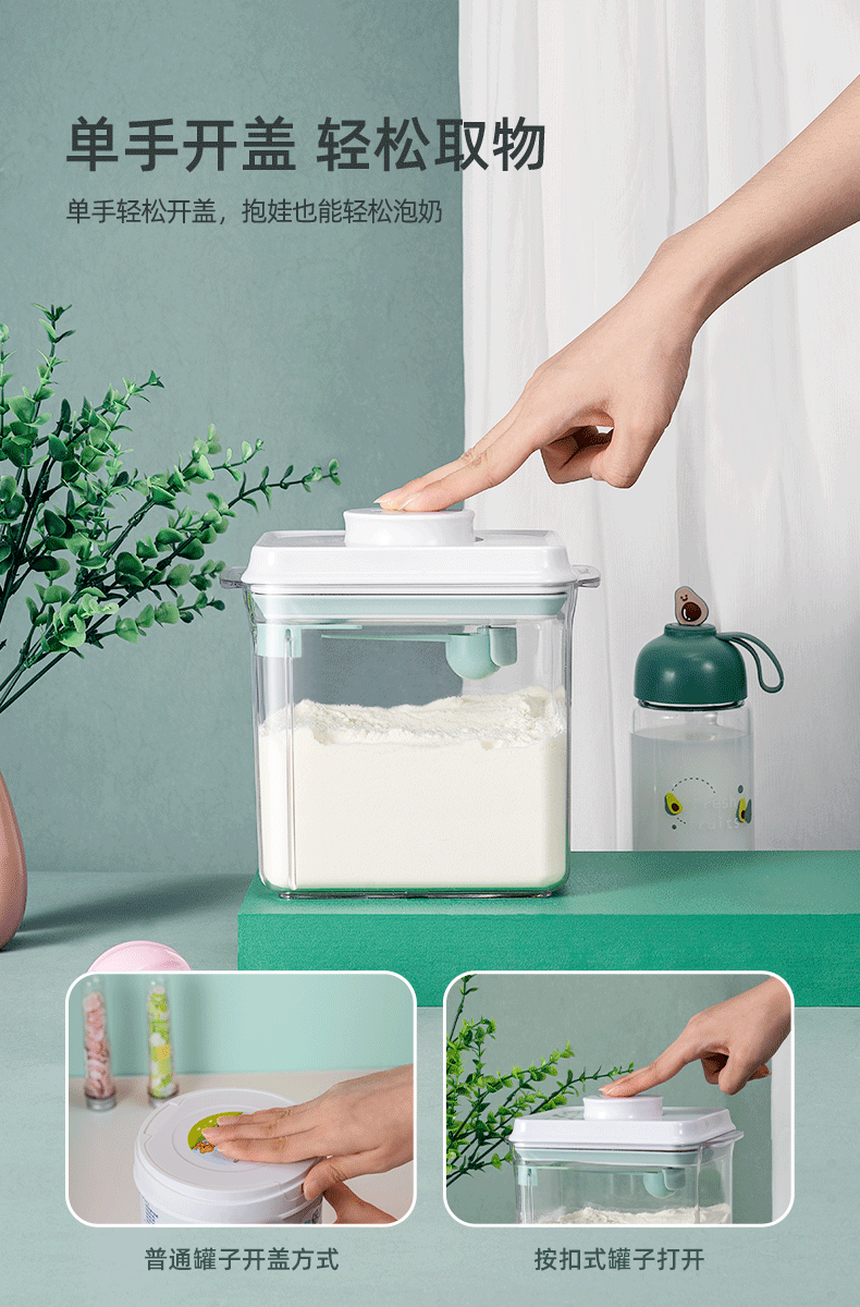 【育婴师推荐】安扣一键开盖储物罐 茶色塑料奶粉盒密封罐 装防潮奶粉罐
