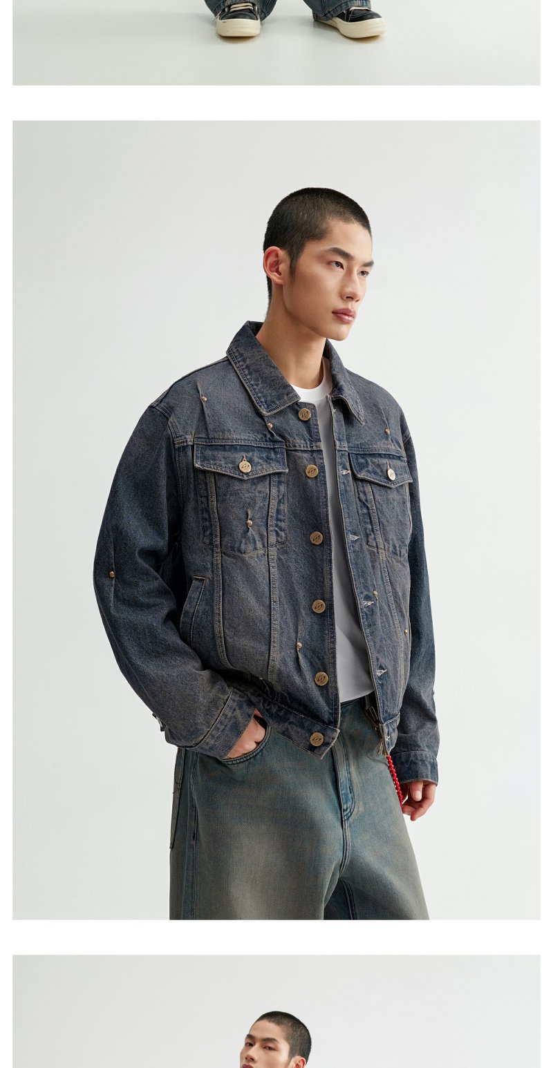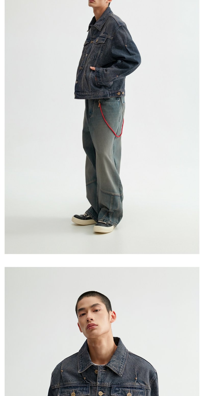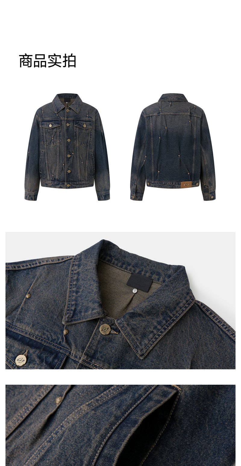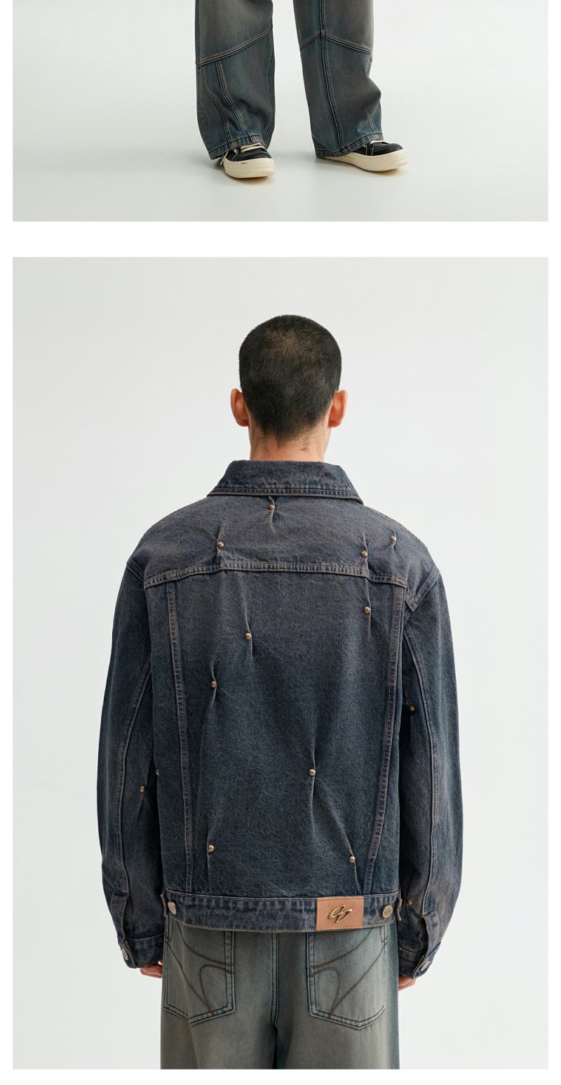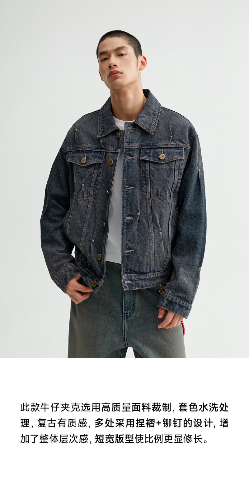 【商场同款】CHINISM赤尘 铆钉捏褶牛仔外套男2025秋季水洗夹克