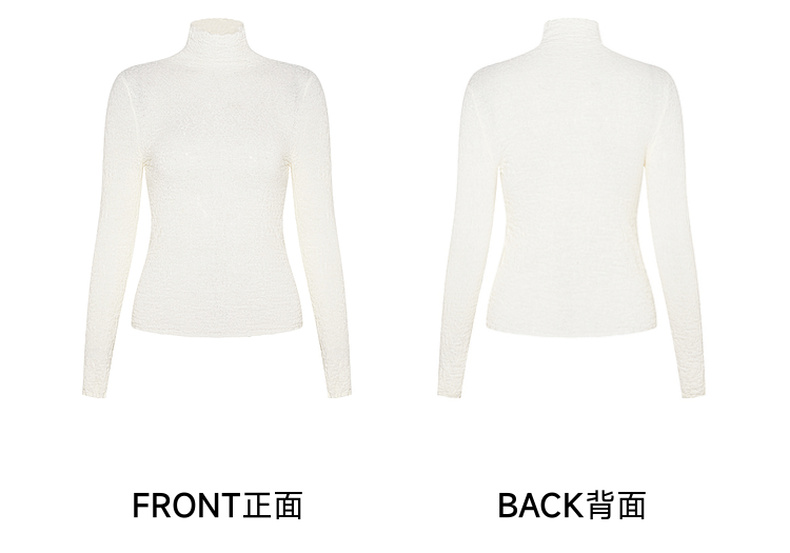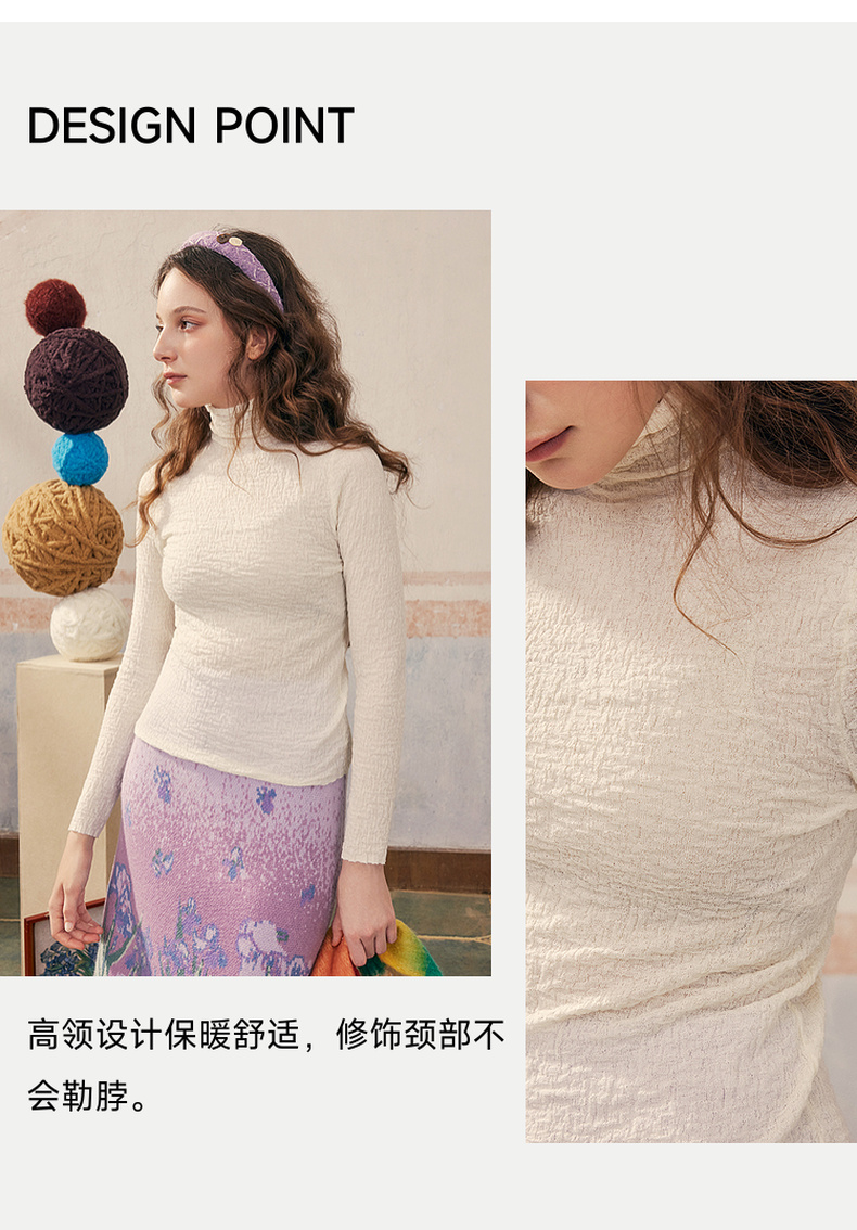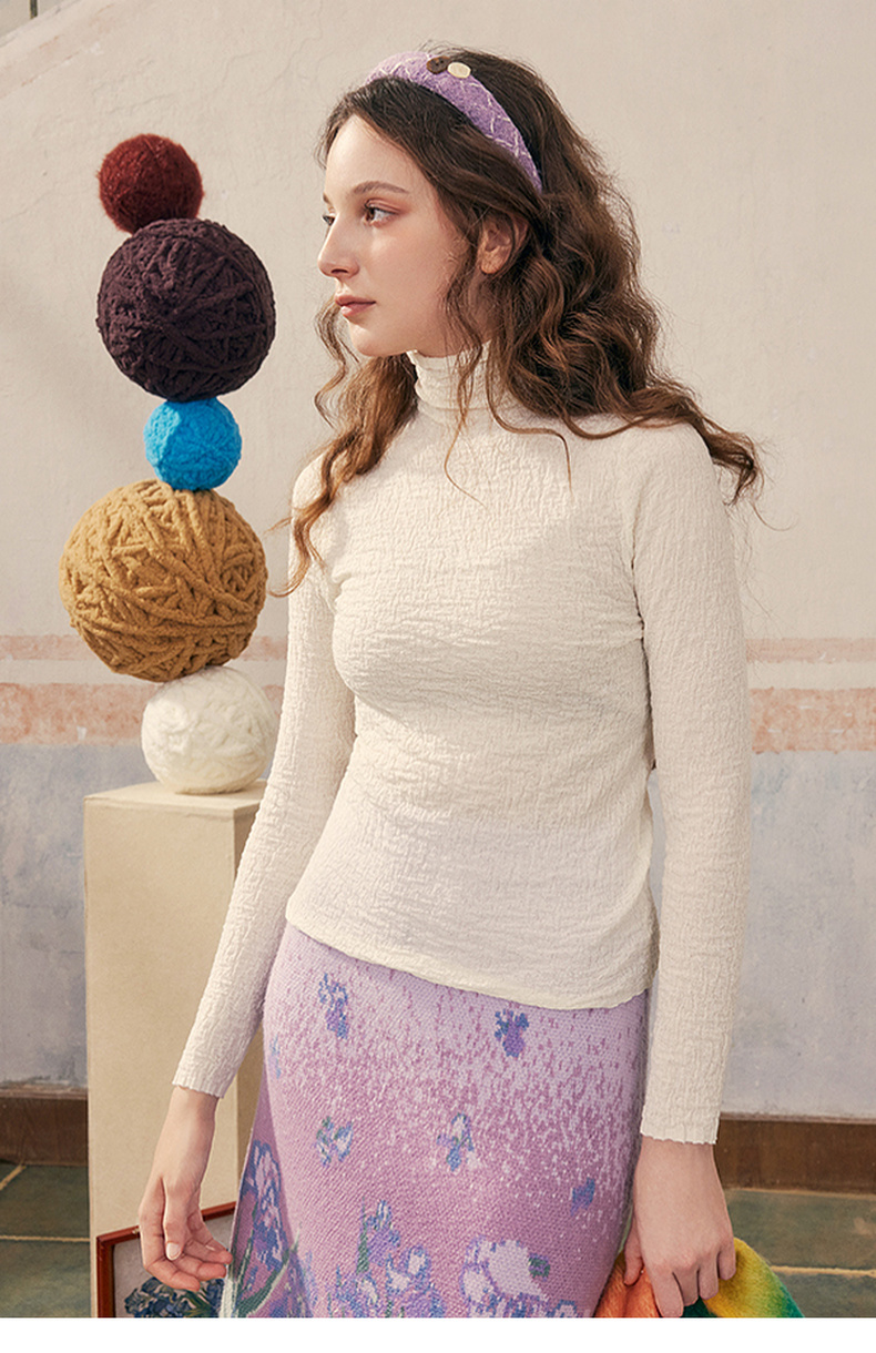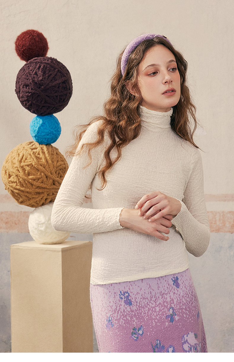 两三事 晨晓光年 2024秋季新款百搭褶皱高领修身打底衫女针织衫
