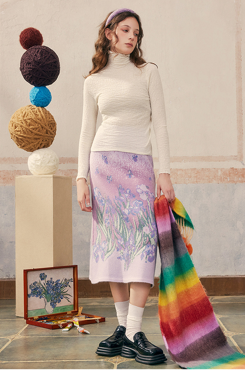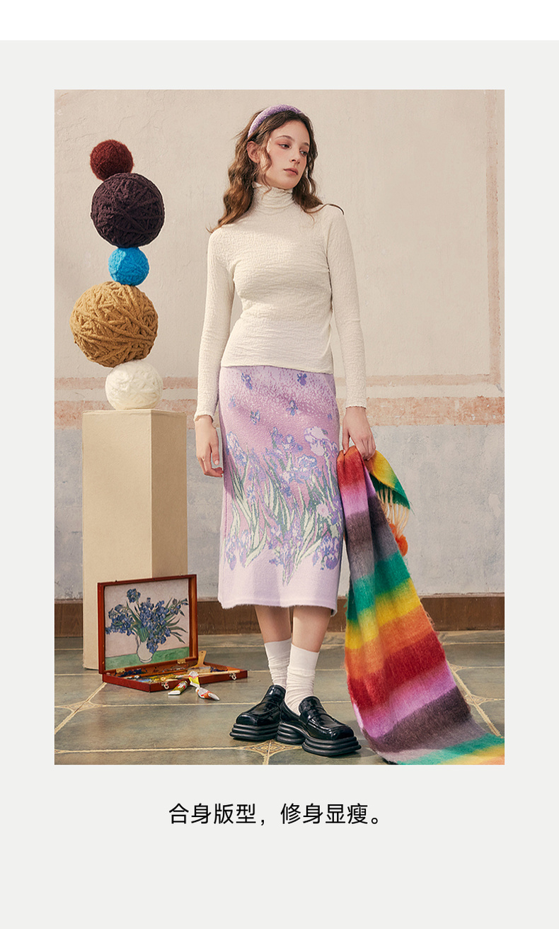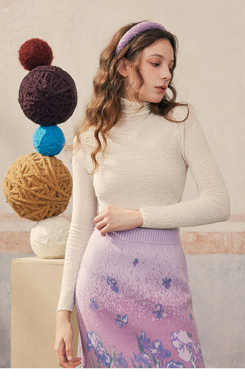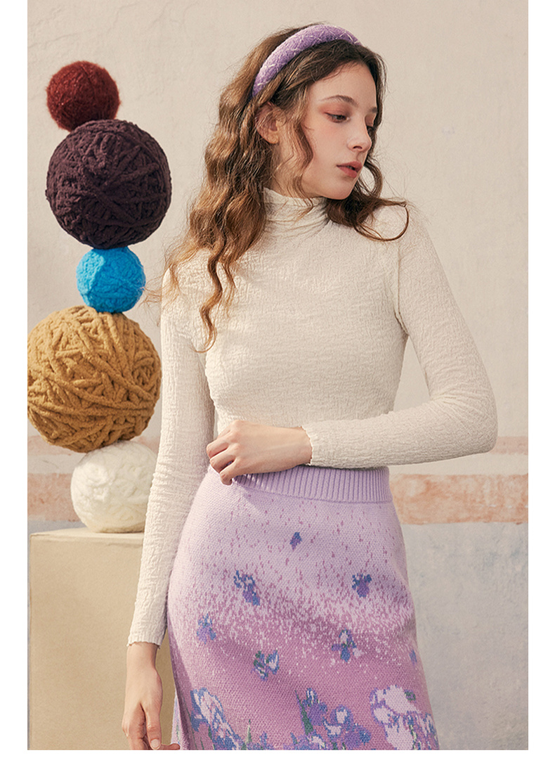 两三事 晨晓光年 2024秋季新款百搭褶皱高领修身打底衫女针织衫