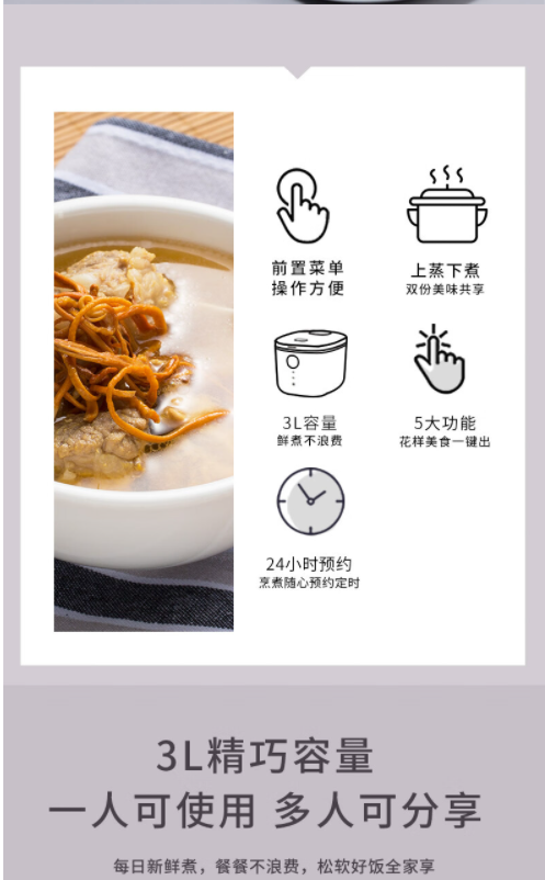 【小家电】大宇(DAEWOO)电饭煲家用多功能3L保温预约智能电饭煲 (星云白) 3L HR