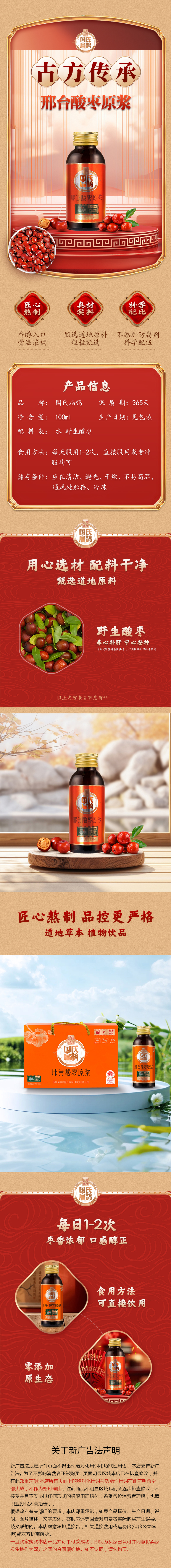 严选 | 国氏扁鹊 邢台酸枣原浆100ml*10瓶/提 道地草本 植物饮品