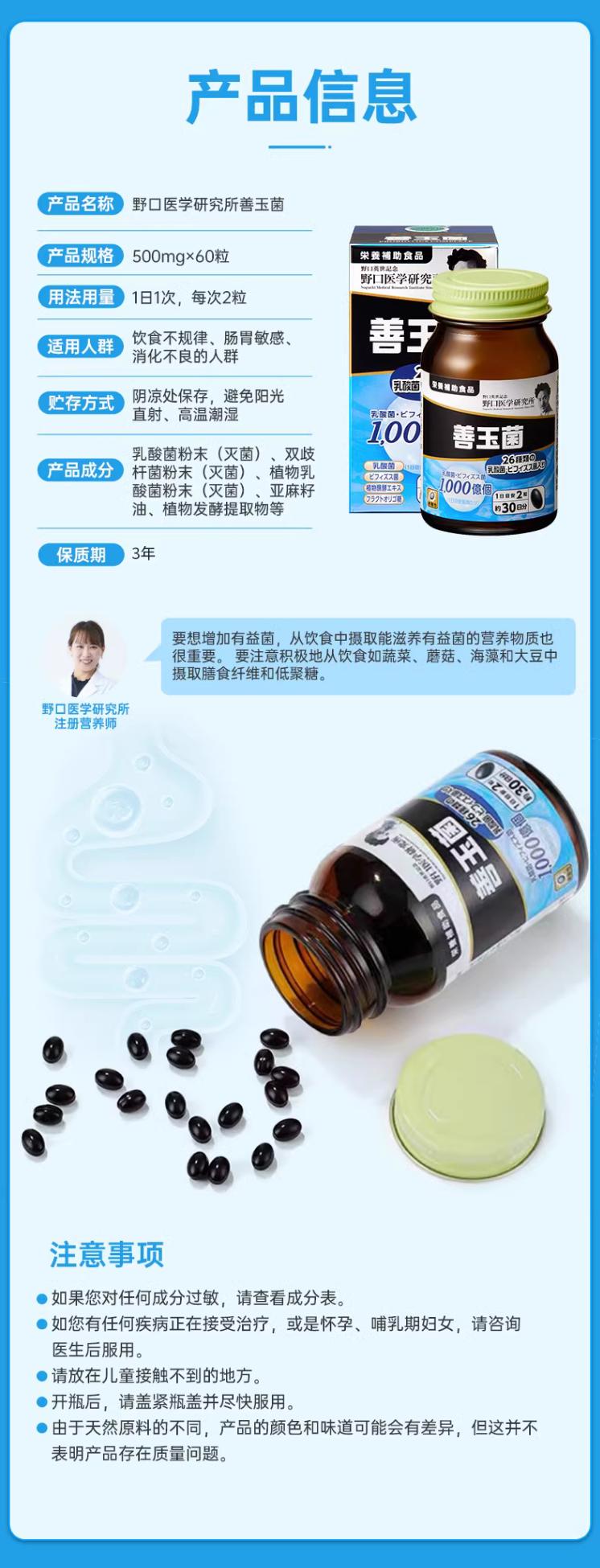 【日本直邮】Noguchi 野口医学研究所 善玉菌粉胶囊男女大人肠胃调理 60粒