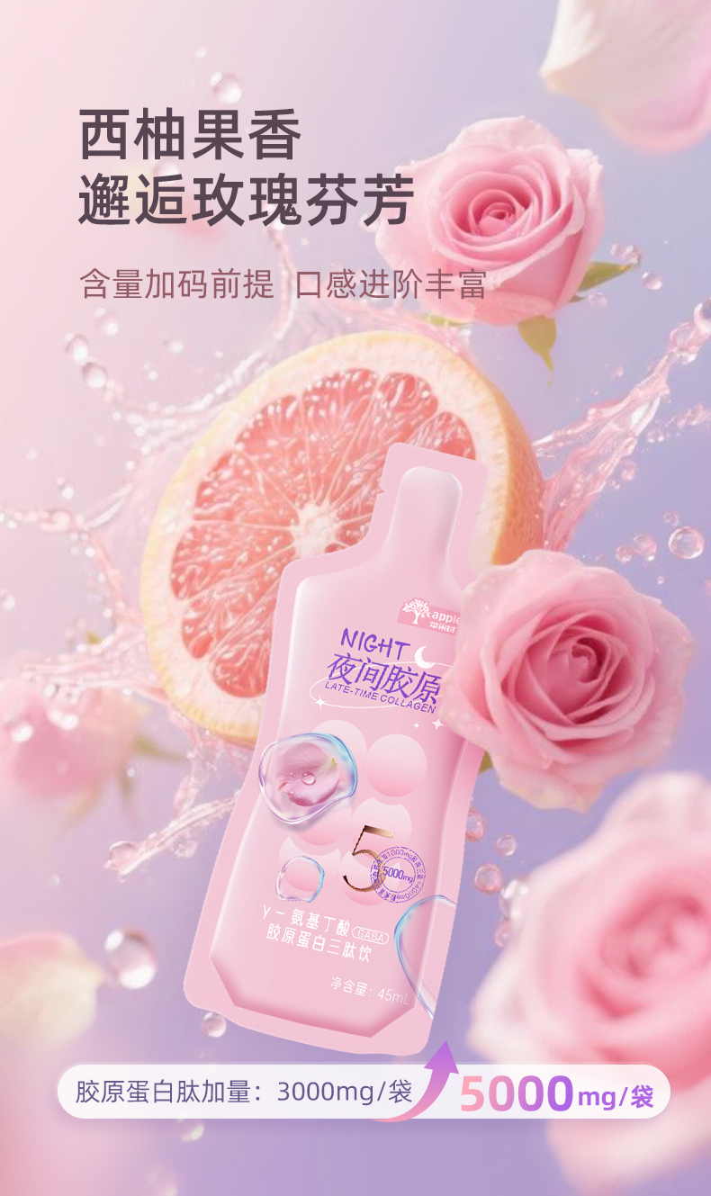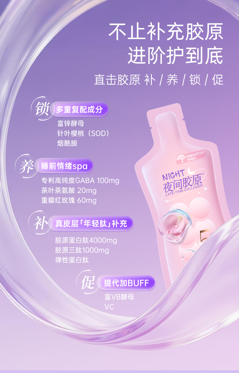 【苹果树】 夜间胶原全面升级 高含量胶原蛋白肽+重瓣玫瑰+γ氨基丁酸,好眠好颜 45ml*7袋/盒,对海鲜过敏勿拍【嗨购】-YJJY