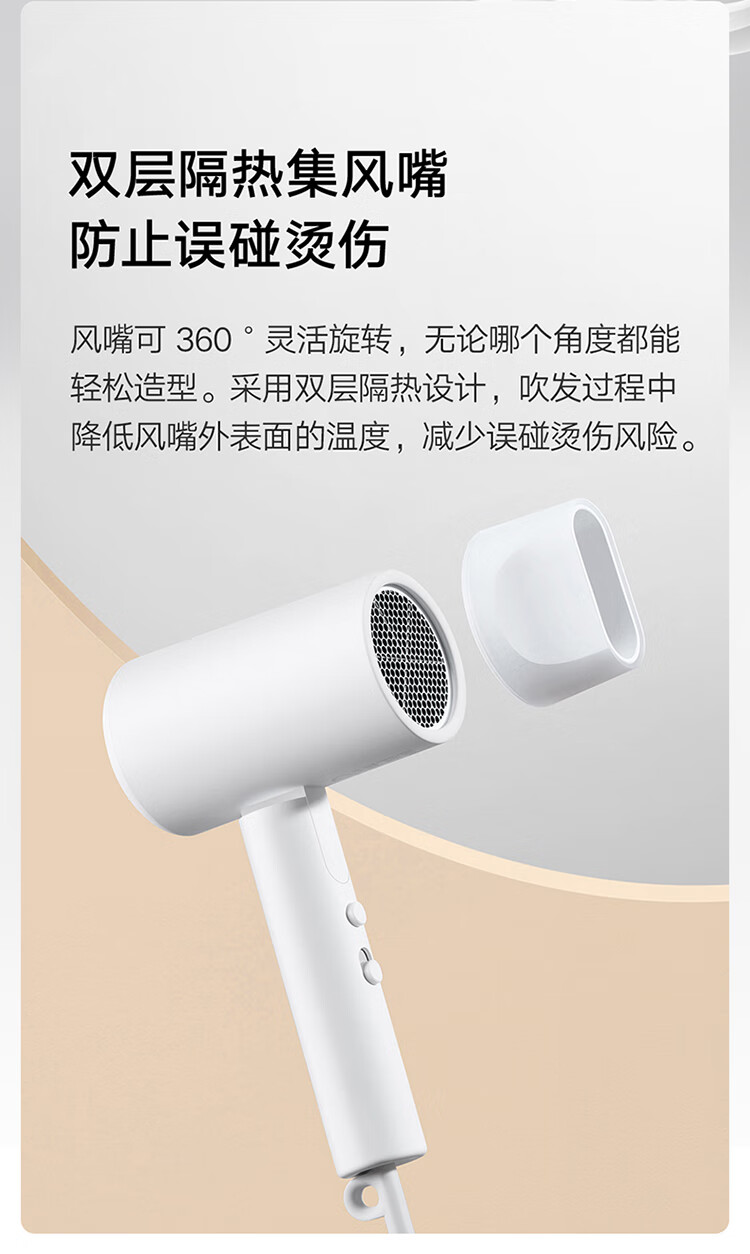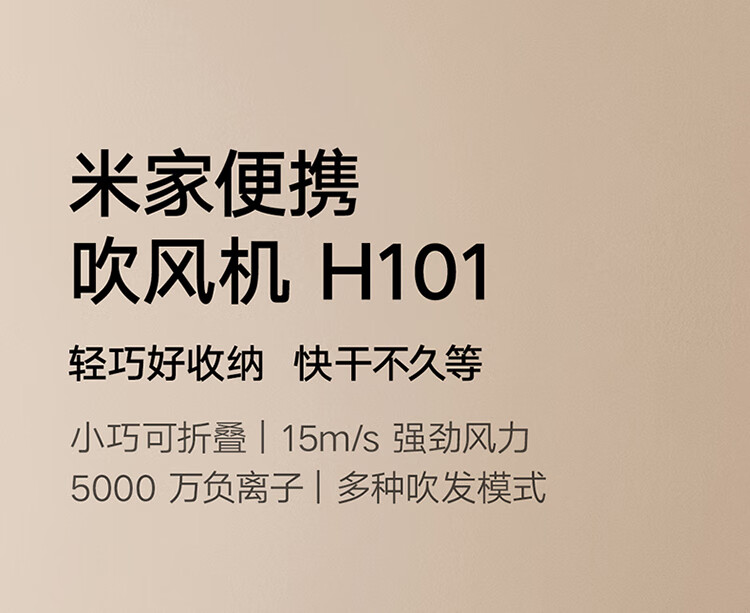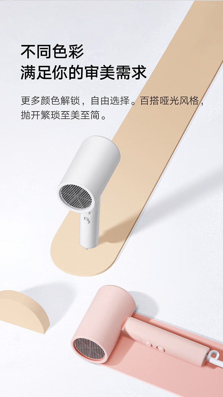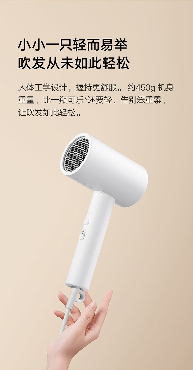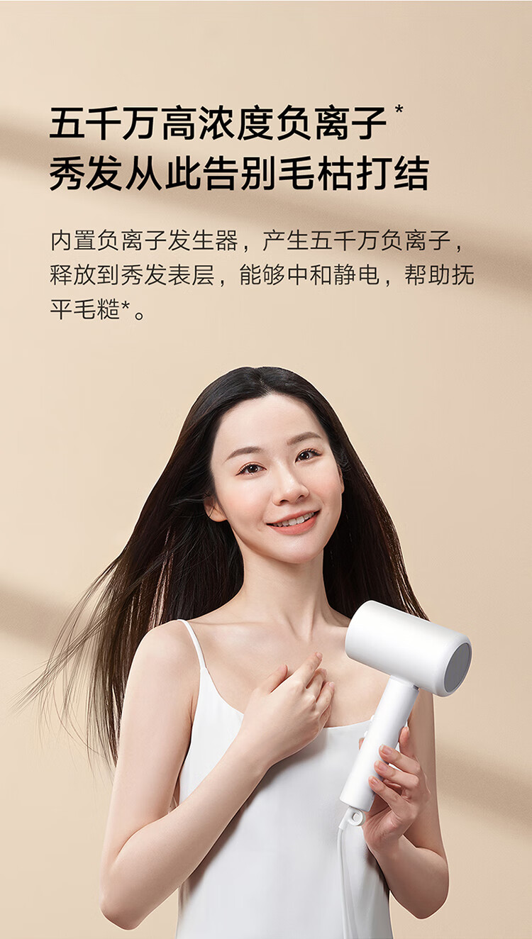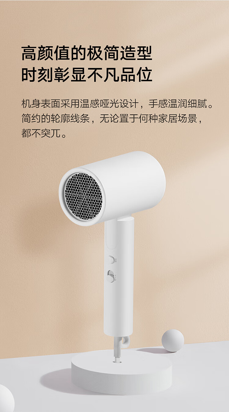 积分免费兑:米家小米电吹风 吹风机 负离子护发可折叠 大风力速干 H101 白色 CMJ04LXW