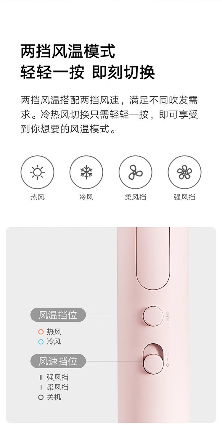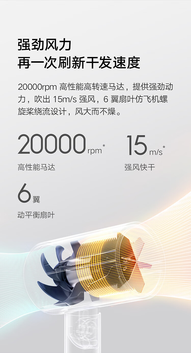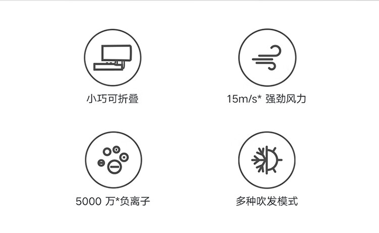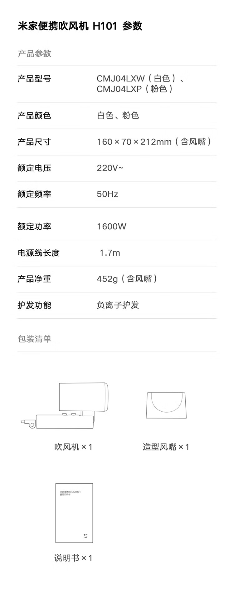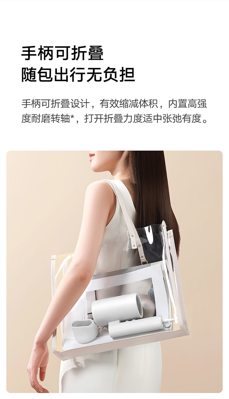积分免费兑:米家小米电吹风 吹风机 负离子护发可折叠 大风力速干 H101 白色 CMJ04LXW