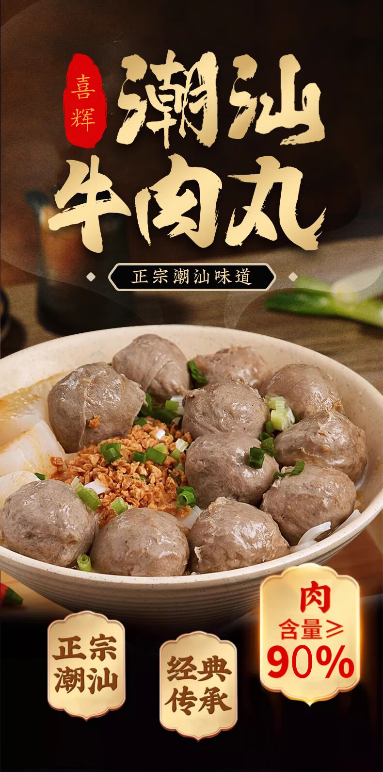 喜辉三星款爆汁潮汕正宗牛肉丸牛筋丸200g*5袋肉丸食材火锅丸料2斤装 牛肉丸200g*3袋牛筋丸200g*2袋
