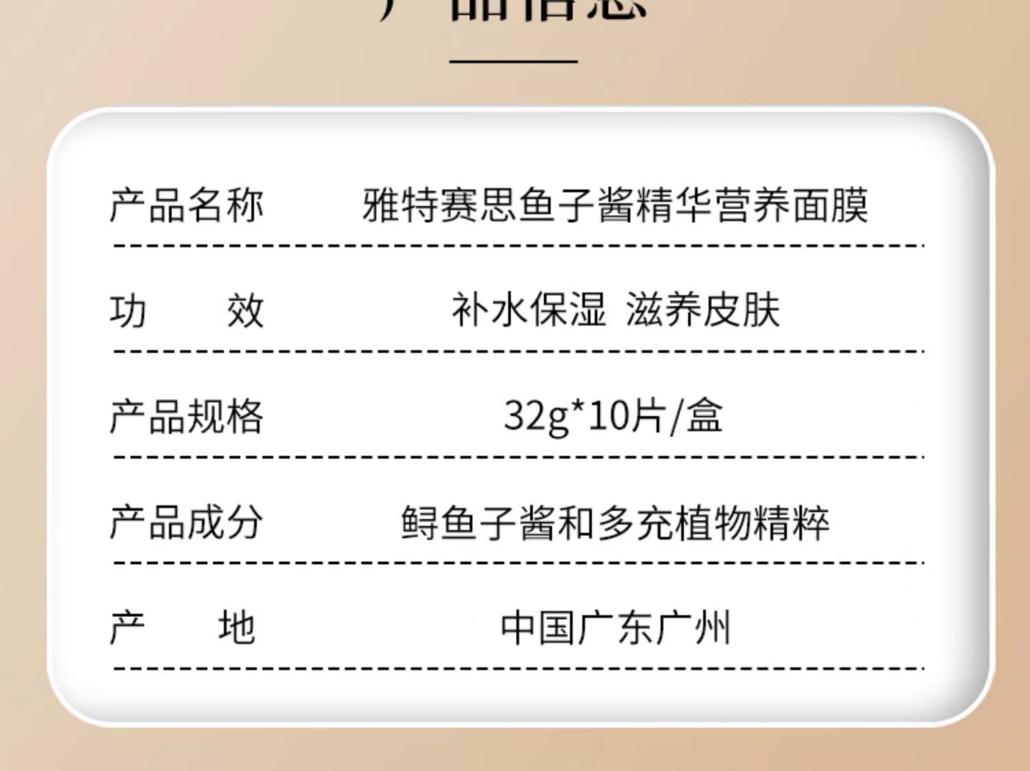 雅特赛思鱼子酱营养面膜 32ml*10片 299/2盒