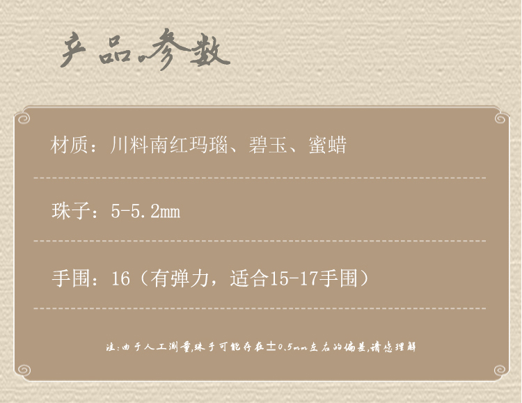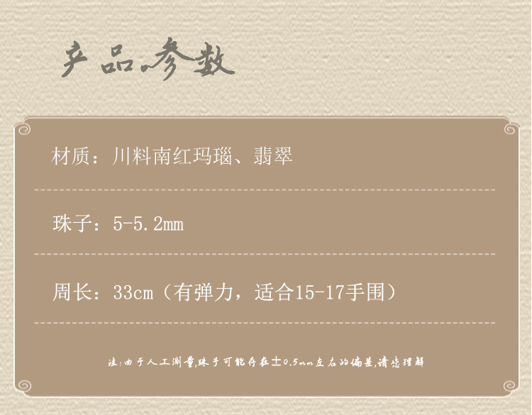 注:玉石玛瑙是大自然的恩赐,朱砂点、飘花不可控,黑点、冰裂、裂痕、棉絮、矿块、平口、颜色大小不均等属于天然石材特性无法避免,不属于质量问题,因光线影响会有一定色差,以实物为准。