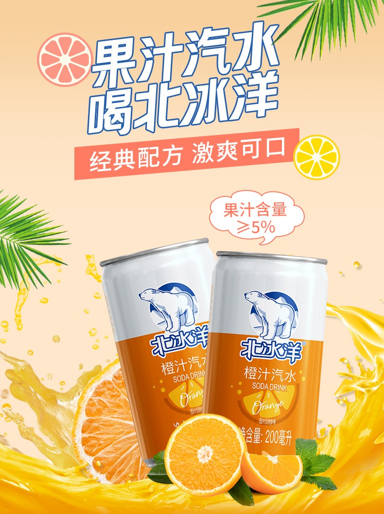 北冰洋 汽水 迷你罐橙汁汽水 200ml*12罐