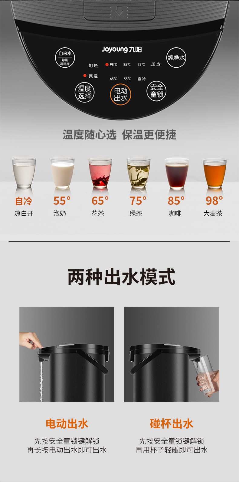 九阳K50-P11电热水瓶保温家用5L全自动智能恒温烧水壶304不锈钢