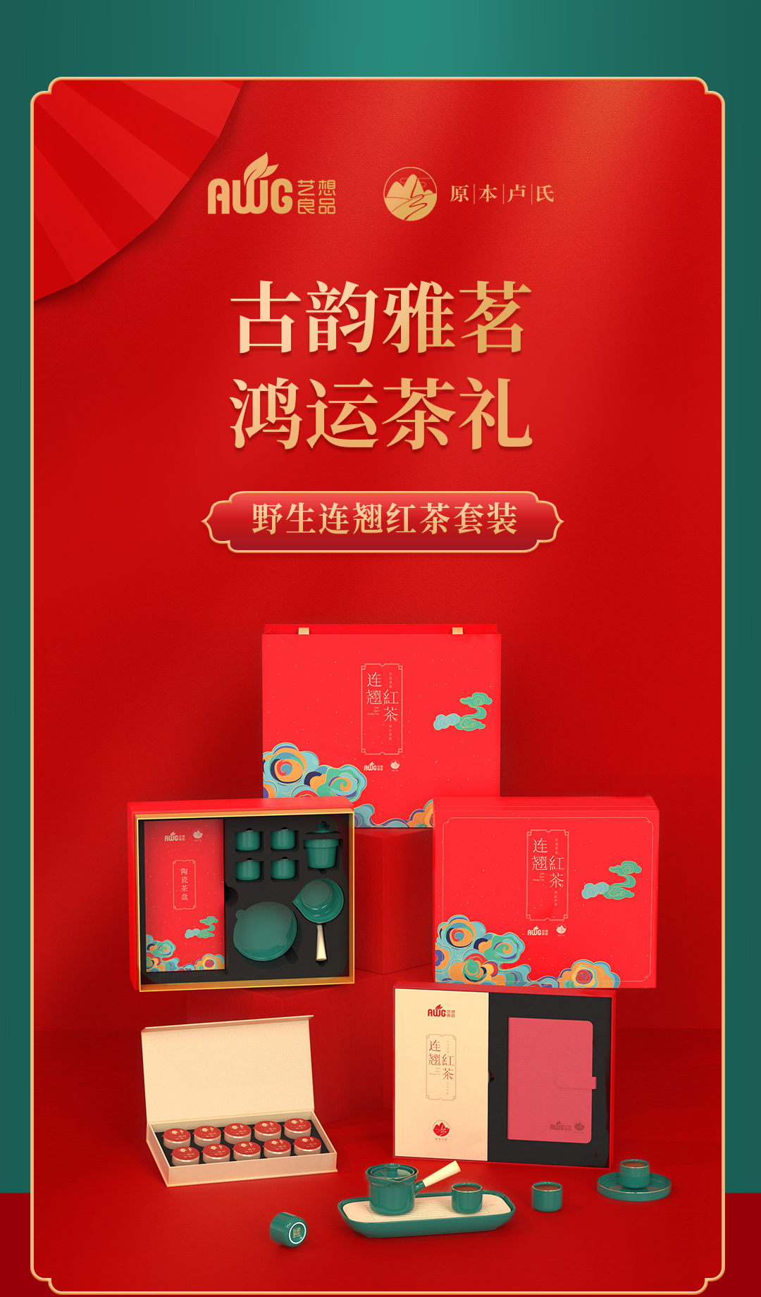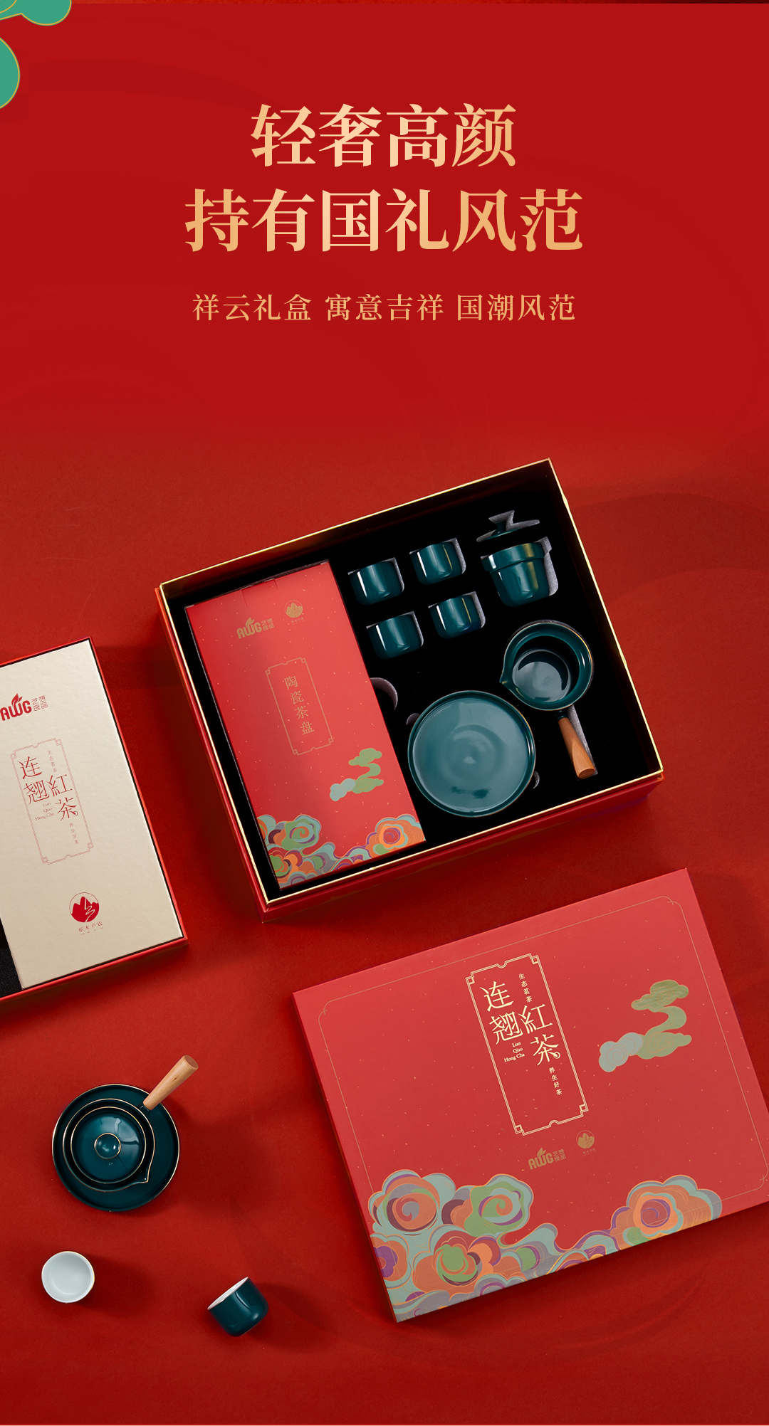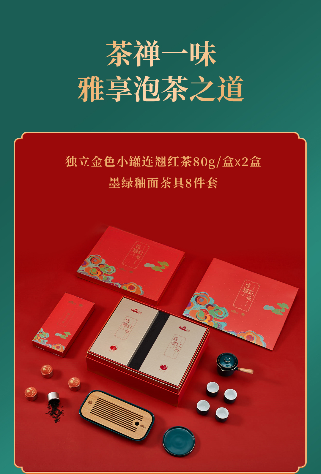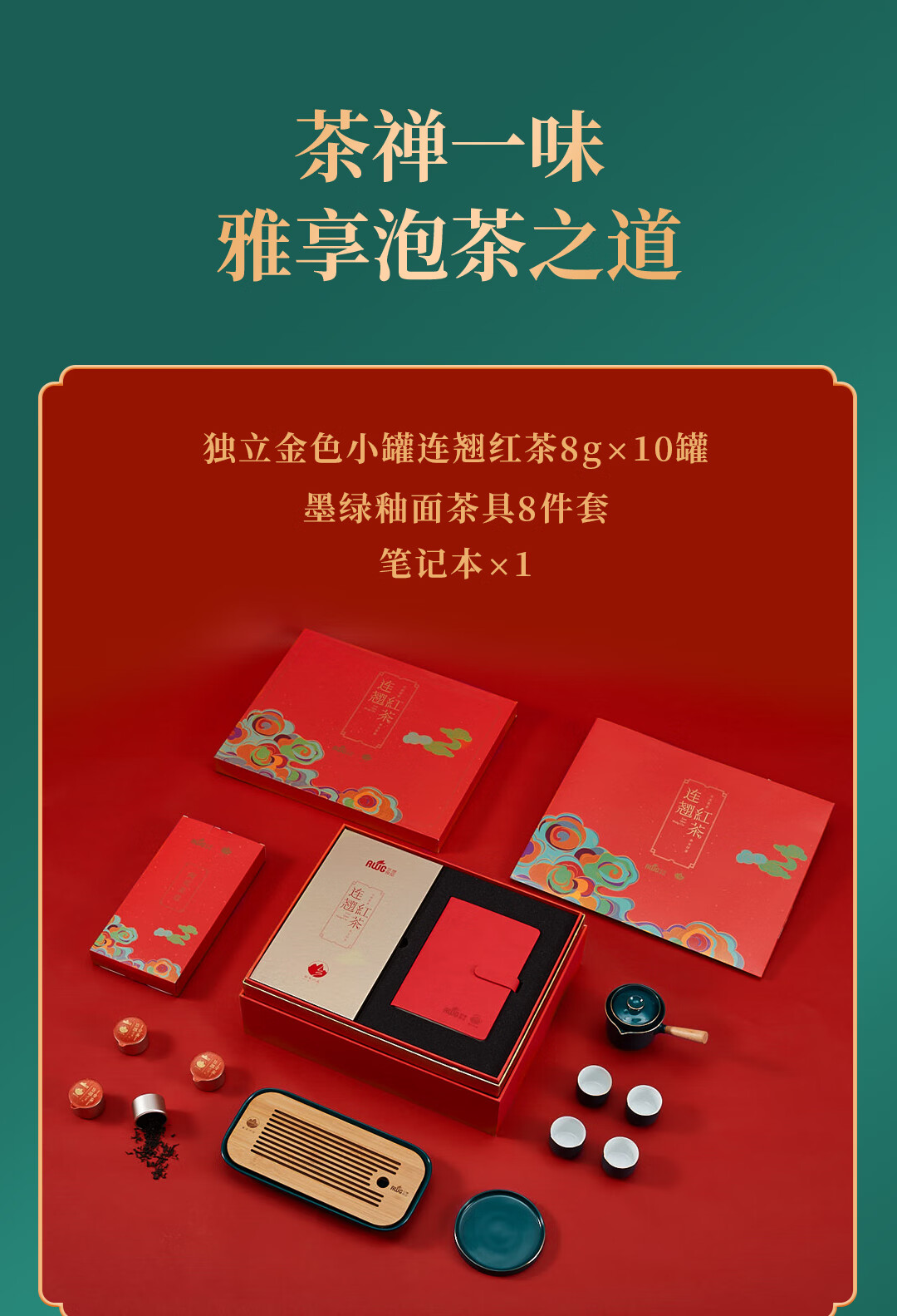 艺想良品(AWG)连翘红茶 墨绿釉面茶具8件精美茶叶礼盒装 送礼自饮芽茶新茶80g AWG-GCJ80