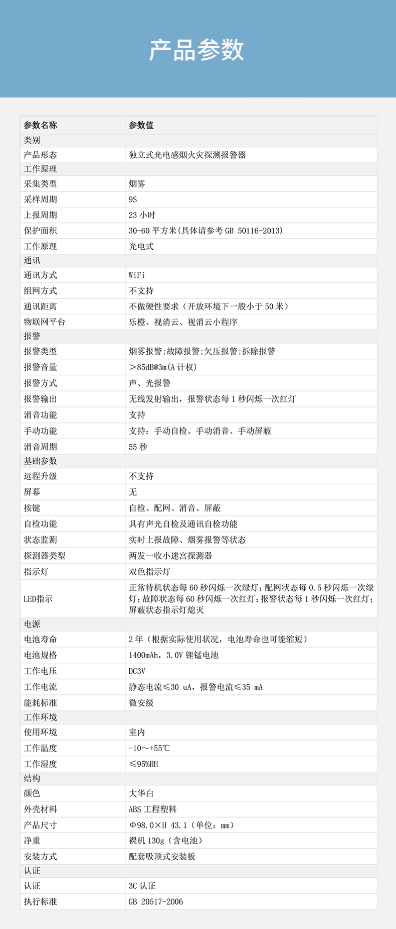 Wi-Fi感烟火灾探测报警器DH-HY-SA4FA
