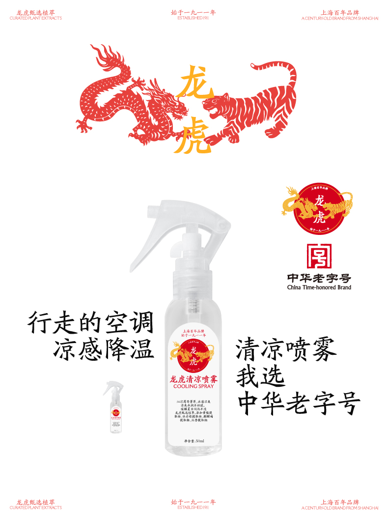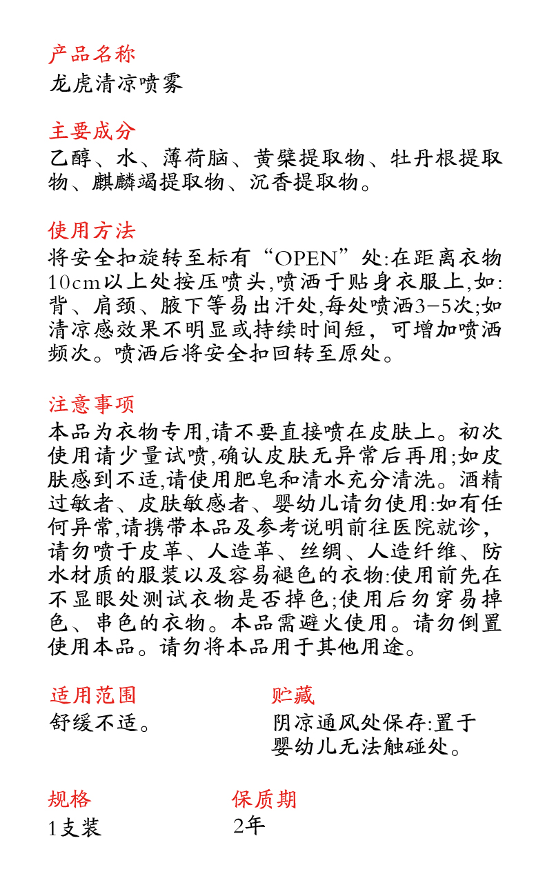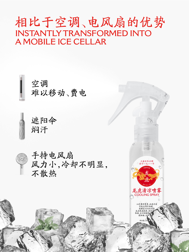 优选丨【2瓶装】龙虎清凉喷雾 温神器夏季天衣物冰凉喷雾剂 50ml