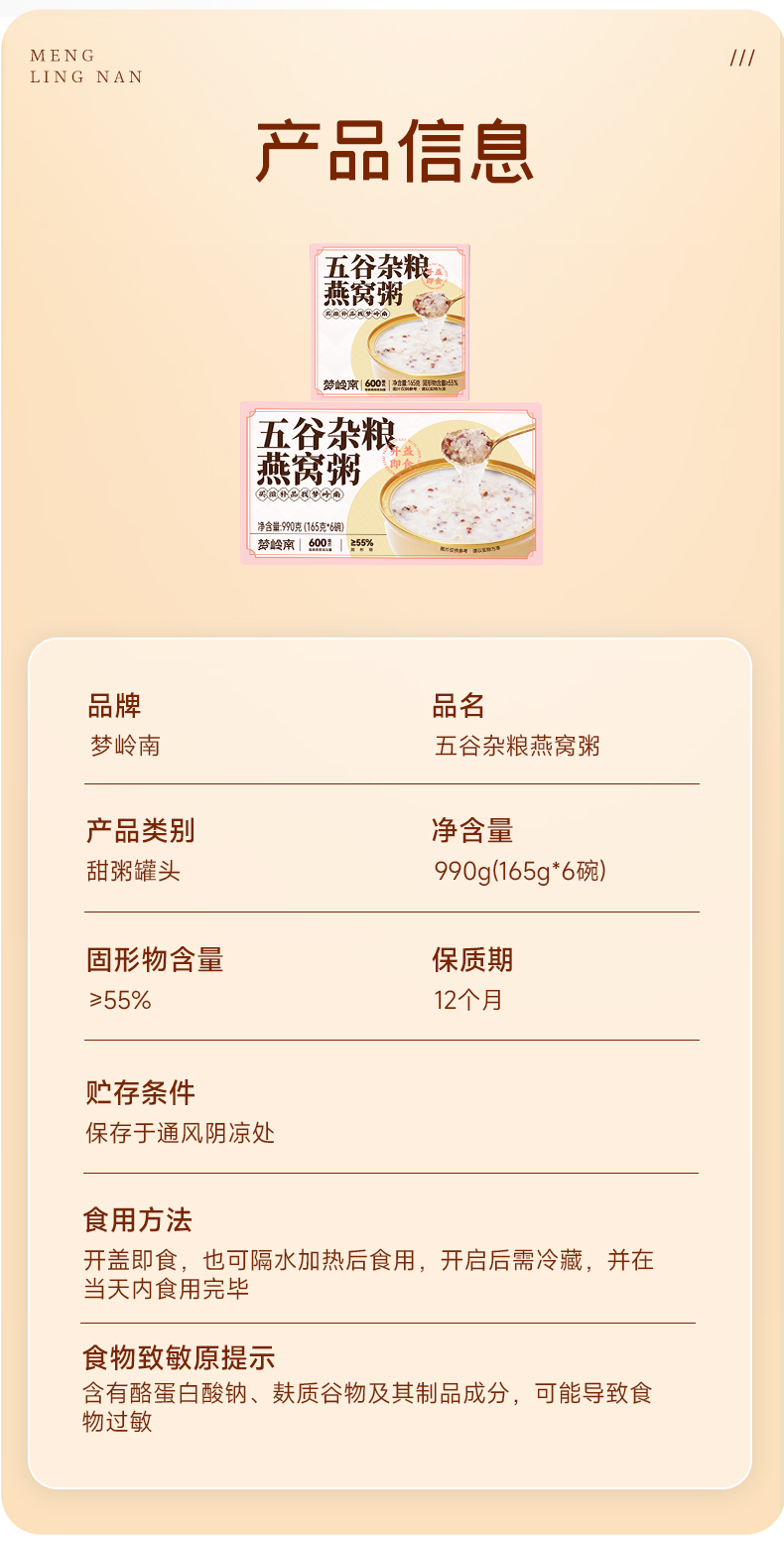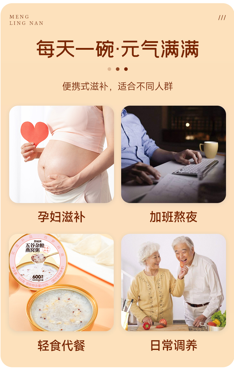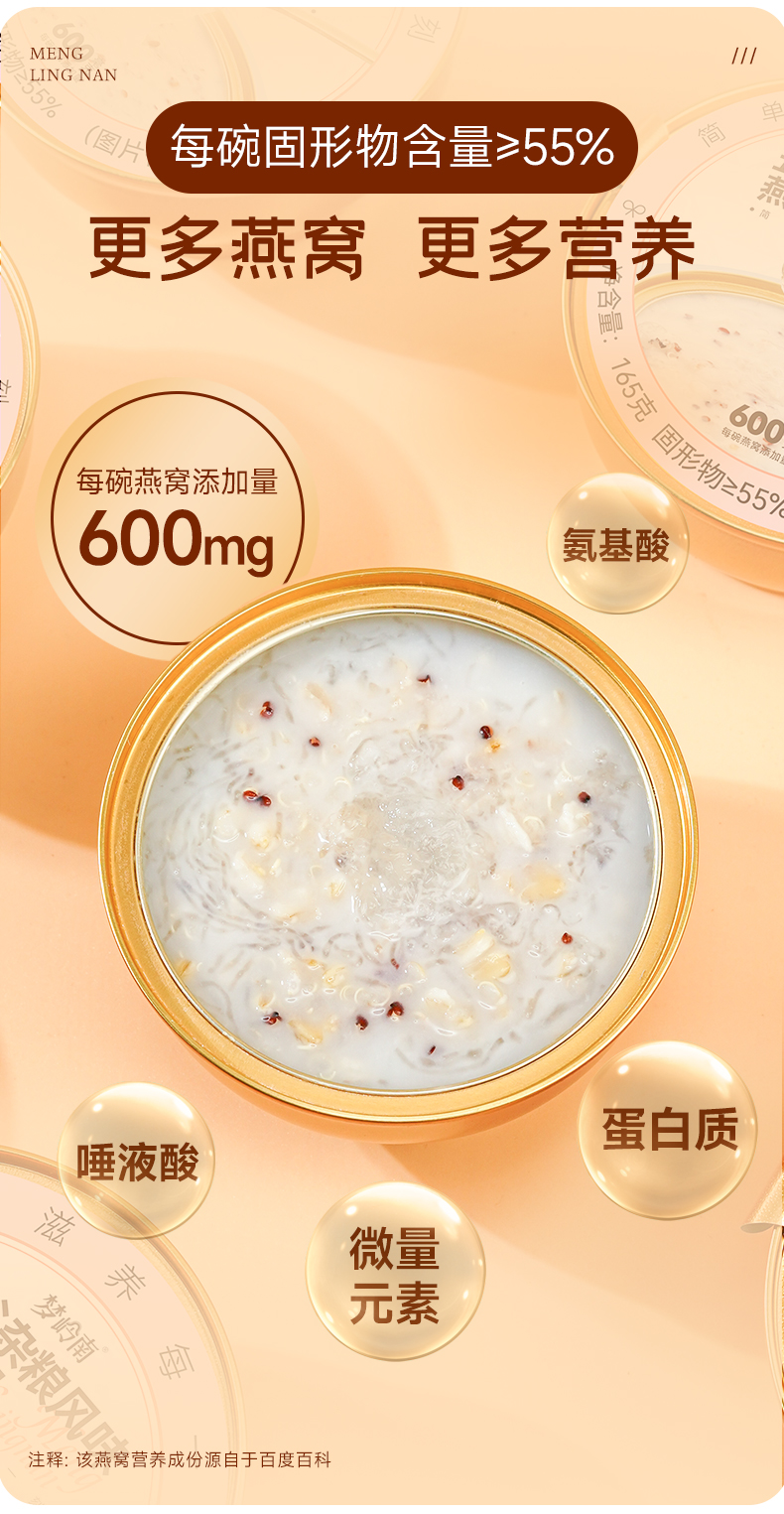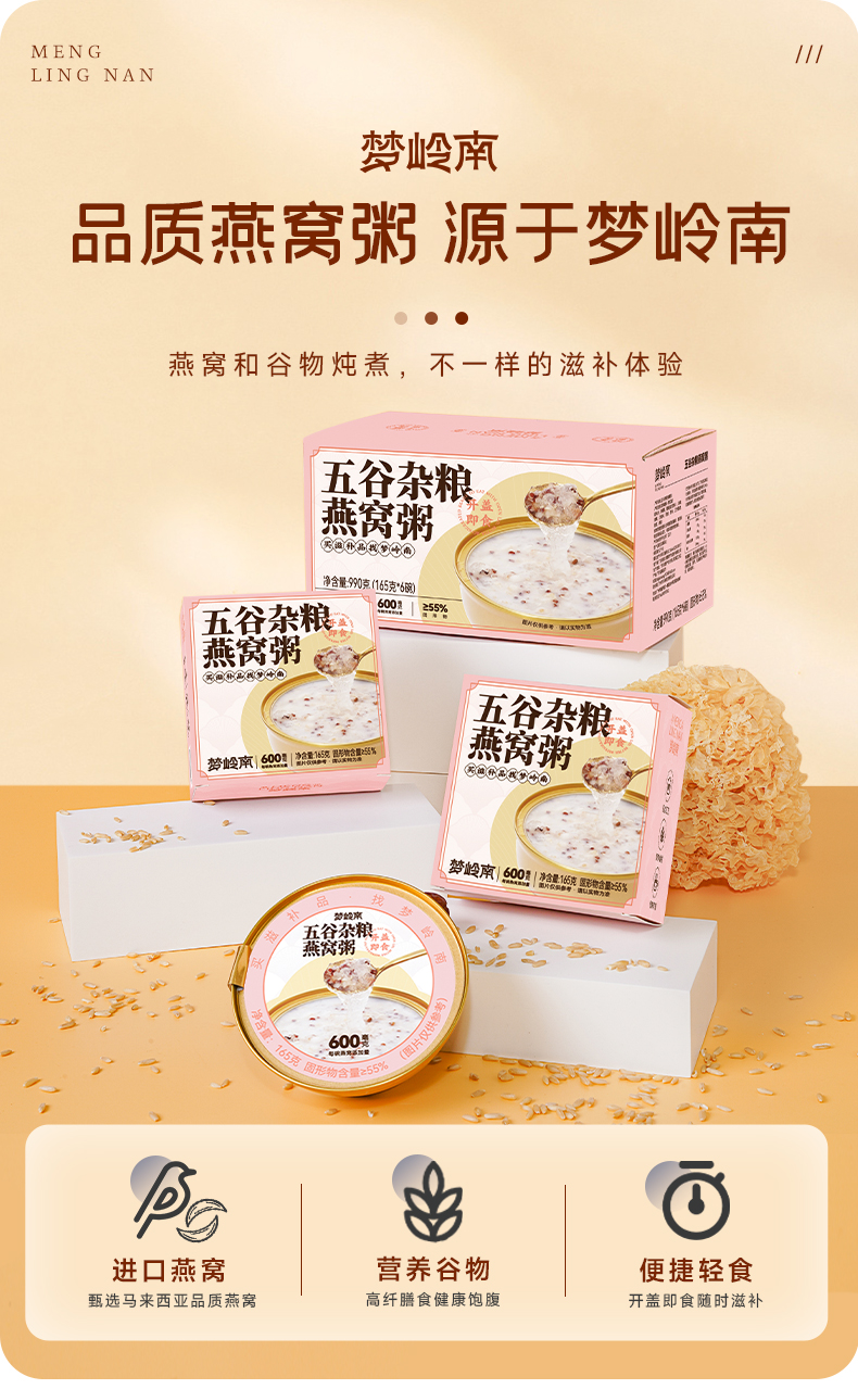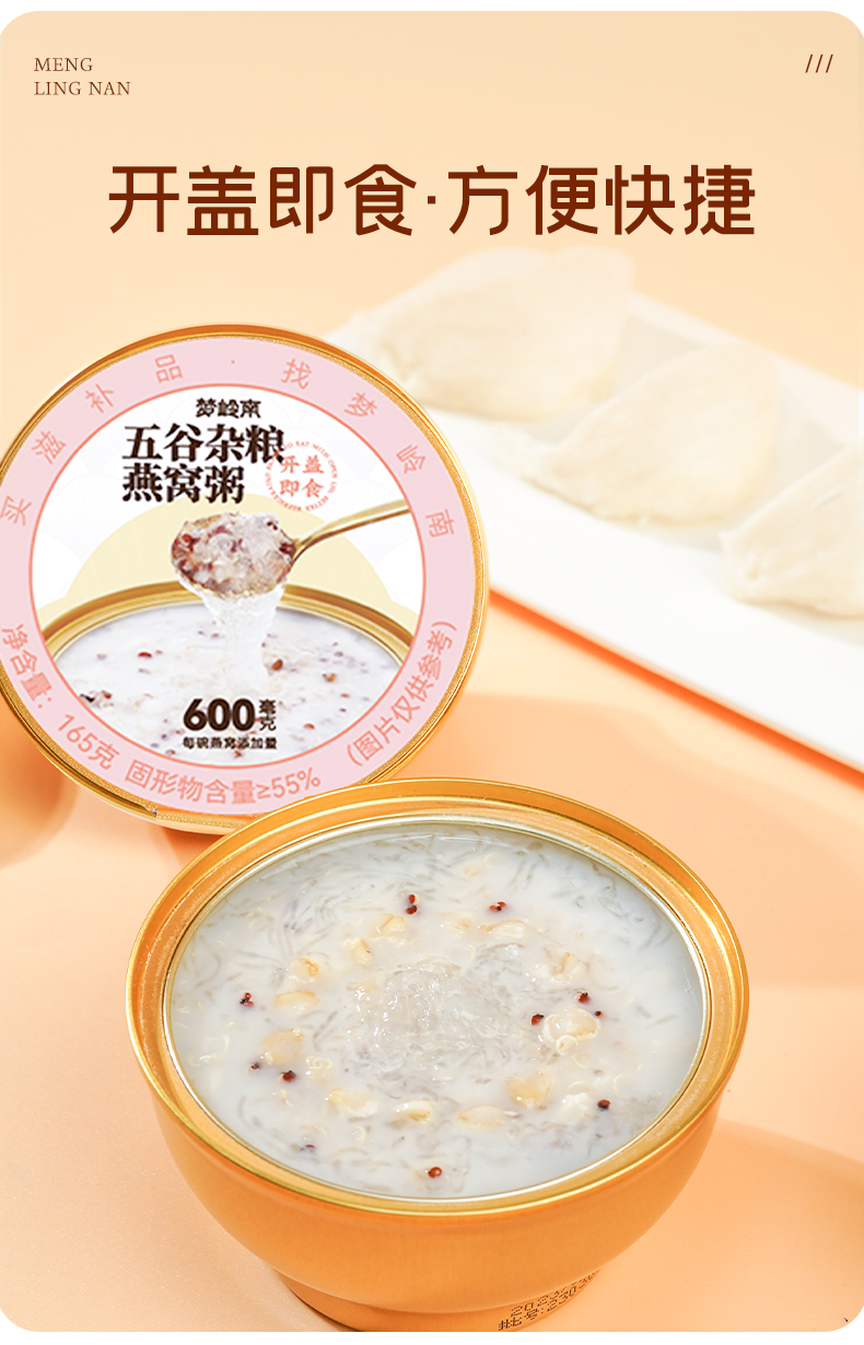 【守护孕妈礼 燕窝润颜】梦岭南五谷燕窝粥165g*24碗/4箱装 孕期滋补 五谷为养 燕窝润颜