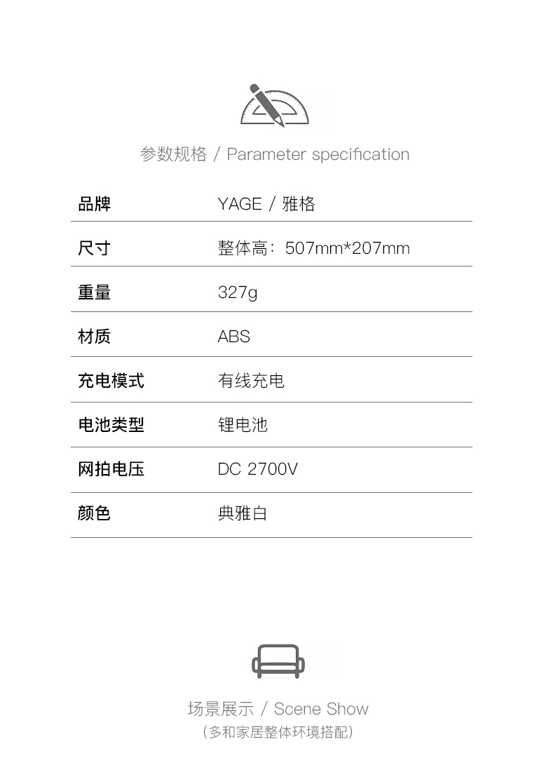 雅格电蚊拍充电式灭蚊拍家用灭蚊虫驱蚊灭蚊器苍蝇拍捕蝇器YG-D006
