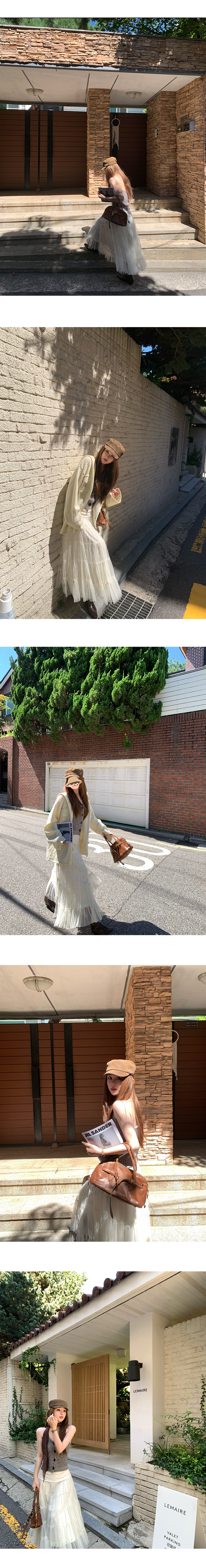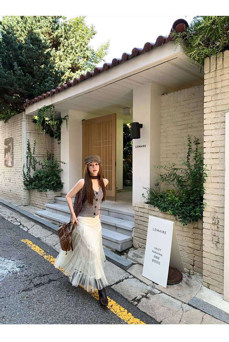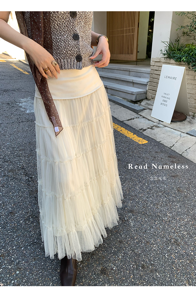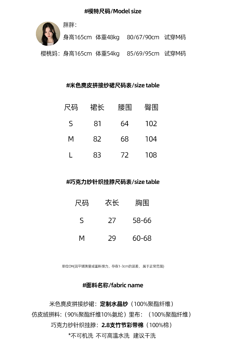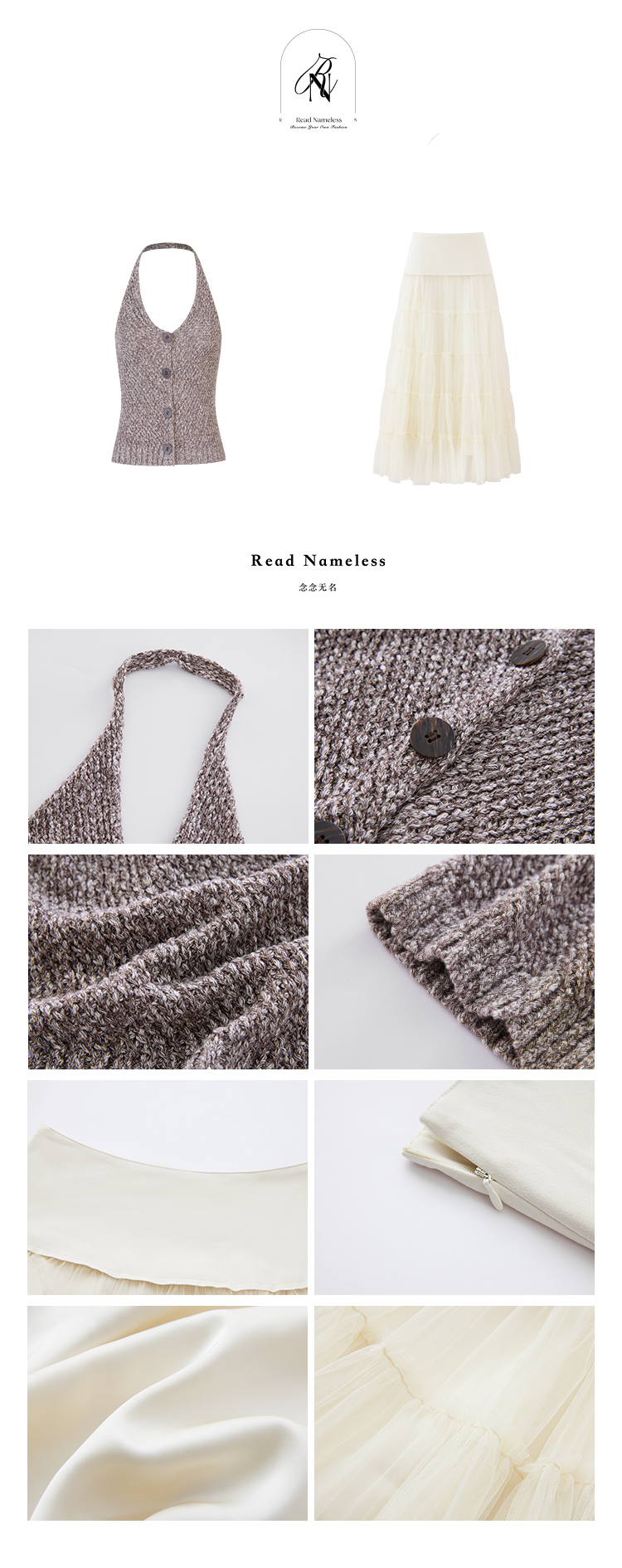 Read Nameless /巧克力纱针织挂脖+米色麂皮拼接纱裙 2025/10/13